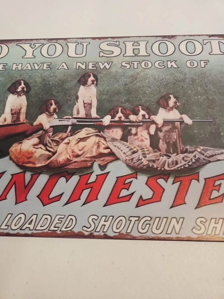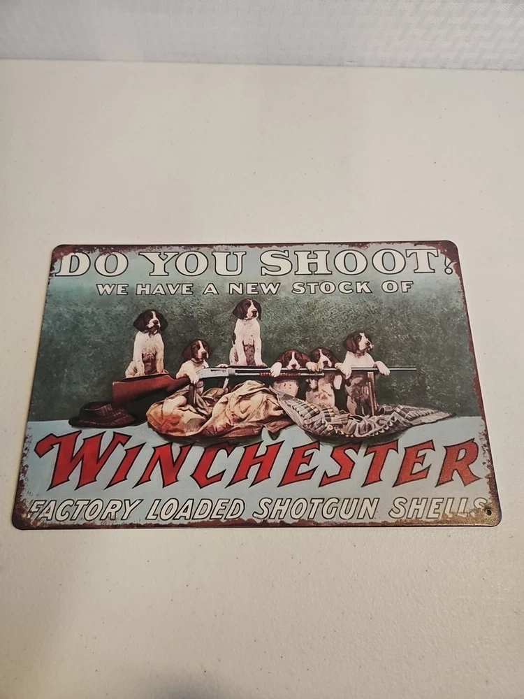 Add a touch of rustic charm to any room with this Winchester metal sign. Measuring 8x12 inches, this medium-sized sign features a novelty pattern of shells and a rustic/primitive style that is perfect for any home décor. The sign is made of high-quality metal material with a metallic finish that adds to its decorative appeal. The sign can be mounted on a wall or door using the provided hanging feature, or it can be displayed horizontally on a shelf or table. Its rusted look and multicolor design make it a great addition to any room. This sign is perfect for advertising purposes and comes in a rectangular shape that is easy to display.