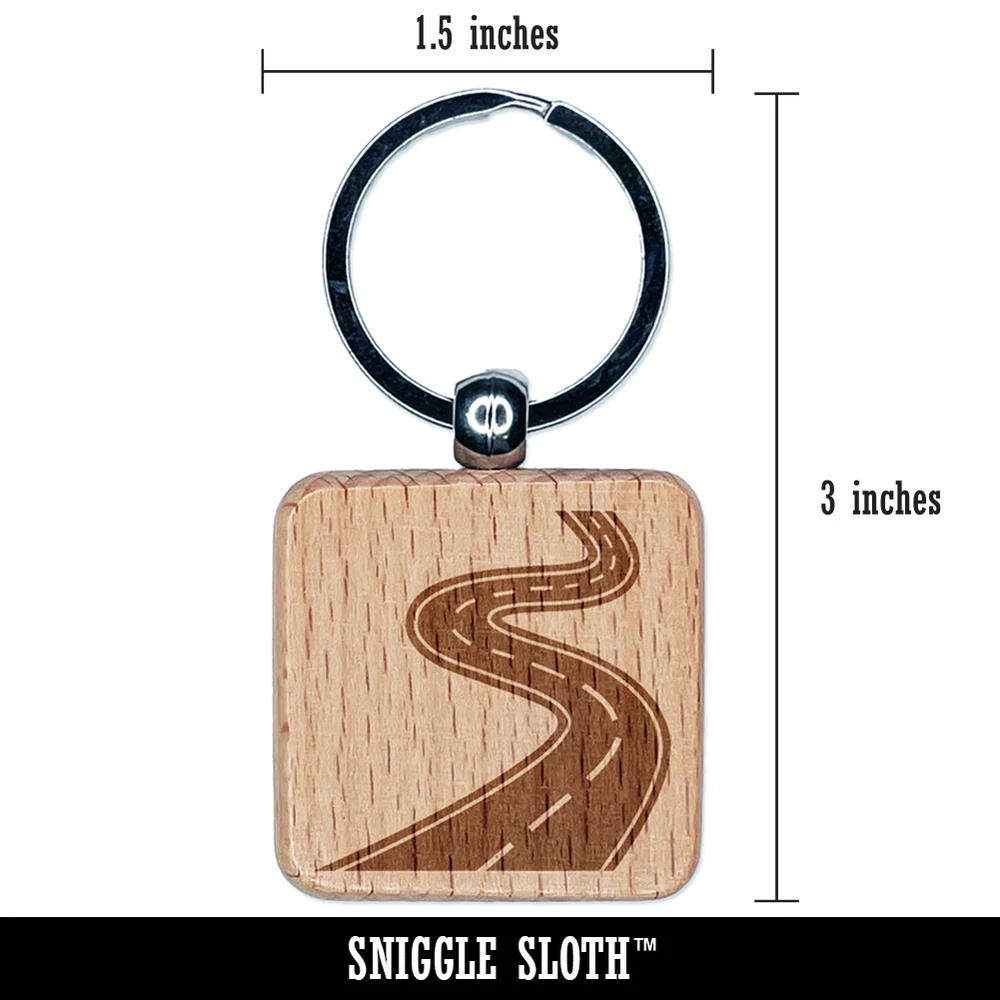 Winding Road Engraved Wood Square Keychain Tag Charm
