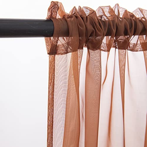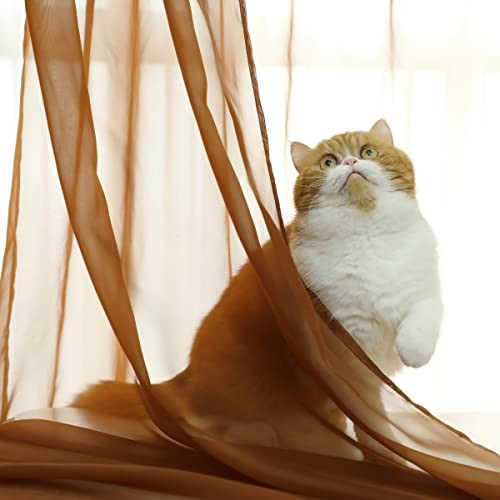 Window Brown Sheer Curtains 108 Inches Length 2 Panels Voile Light Filtering