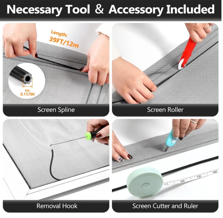 Window Screens Replacement Repair Kit, 48IN X 177IN Screen Door Mesh Replacement