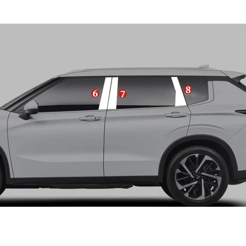 Window Sill Molding Pillar Trim Strips For Mitsubishi Outlander 2022-2024 Steel Product Description Attention: Because the same model car may be differently produced in different country. Please ensure the part of your car like our picture shows, or it will not fit, if any differences, please contact with us before purchase, thanks! Item Fitment: Fit For Mitsubishi Outlander 2022-2024 Item Description: Condition: 100% Brand New Material: High quality of stainless steel Color: Same as in the pictures Made in an ISO 9001 facility to ensure good quality Easy installed and No modification needed,double side Automotive tape at the back Pa ckage Include: 1 6 pcs/set(Sold as seen, please ensure suitability carefully before purchase) This item doesn't come with manual installation Installation method: 1. Clean the location of the installation with rubbing alcohol before proceeding. (make sure to remove any grease, wax or dust etc) 2. Please ensure that the product completely fits before proceeding with installation. (Note: if there any questions or if the product does not fit properly, please contact us) 3. Remove the h igh strength double-sided adhesive from the back of the plate. In the case of a relatively low temperature, heat installation location, and plate with a hair dryer or a heat gun on low setting 4. Carefully place the product in desired location and press down for about 1-2 minutes, (Note: do not wash your car for 24-hours. The adhesive should be cured after 12-hours) 5. The installation is complete
