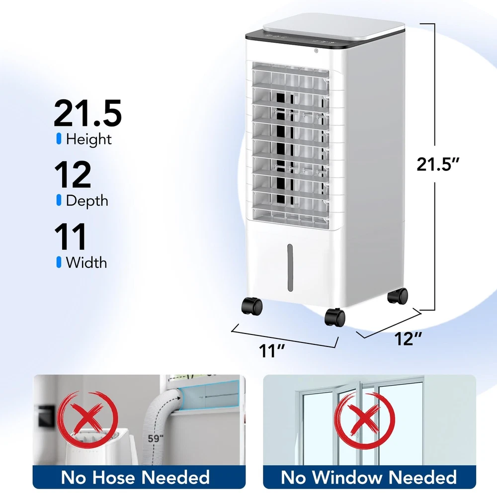 ๐๐ซ๐๐ฆ๐๐ญ๐ข๐ ๐๐๐ฆ๐ฉ๐๐ซ๐๐ญ๐ฎ๐ซ๐ ๐๐ซ๐จ๐ฉ:Experience rapid relief with our 2025-upgraded evaporative cooler. Advanced tech and efficient ducts lower temperatures by 36-45ยฐF (20-25ยฐC), instantly transforming water into powerful ice mist. High-density pads block hot outdoor air. ๐-๐ข๐ง-๐ ๐๐จ๐ฆ๐๐จ๐ซ๐ญ ๐๐จ๐ฅ๐ฎ๐ญ๐ข๐จ๐ง:Beat summer heat and dryness instantly! This portable unit combines air cooling, humidifying, and fan functions. Fill the tank for up to 4-6 hours of continuous cooling comfort (runtime varies), delivering instantly cooler air and soothing skin moisture. ๐๐ฎ๐ข๐๐ญ ๐๐ฅ๐๐๐ฉ & ๐๐ฎ๐ญ๐จ ๐๐ก๐ฎ๐ญ-๐๐๐: Enjoy undisturbed rest with whisper-quiet operation. Easily set the auto-off timer (1-12 hours) for perfect sleep without interruption. Simple controls make it ideal for everyone, including kids and seniors. ๐๐ข๐๐ ๐๐จ๐จ๐ฅ๐ข๐ง๐ ๐๐จ๐ง๐ & ๐๐๐ฆ๐จ๐ญ๐ ๐๐จ๐ง๐ญ๐ซ๐จ๐ฅ:Direct cool air precisely! The 45ยฐ horizontal swing creates a 100ยฐ cooling zone, while 120ยฐ vertical tilt optimizes airflow. Effortlessly adjust settings from anywhere in the room with the included 20ft range remote. ๐๐ ๐๐๐ง๐ค & ๐๐๐ ๐๐๐๐ค๐ฌ ๐๐จ๐ซ ๐๐ฑ๐ญ๐๐ง๐๐๐ ๐๐ก๐ข๐ฅ๐ฅ:Enjoy less refilling and more cooling! The extra-large 1.16-gallon tank provides up to 6 hours of continuous cool air. Turbo-charge the effect anytime using the 4 included reusable ice packs for an extra-arctic blast.