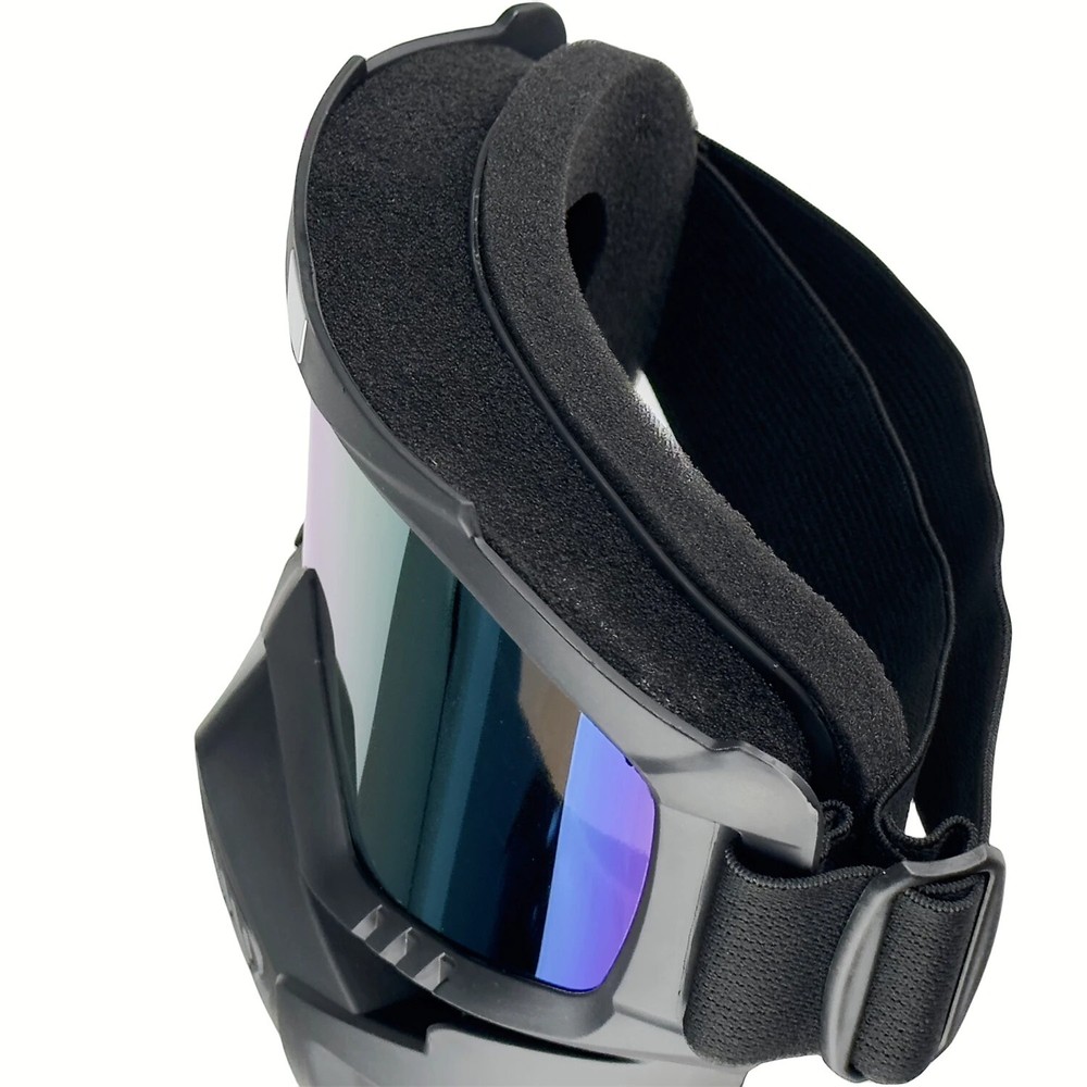 About this item Winter Snow Sport Goggles are essential eyewear designed specifically for snowboarding, skiing, snowmobiling, and other winter sports. Crafted for performance and comfort, these goggles are engineered to provide superior protection against harsh winter conditions while enhancing your visual experience on the slopes or snow-covered trails. Featuring advanced anti-fog lenses, these goggles are built to withstand varying temperatures, preventing condensation from obstructing your view. The lenses are also UV-protected, shielding your eyes from the harmful sun's rays that reflect off the snow. Some models offer interchangeable lenses, allowing you to adjust to changing light conditions, from bright sun to overcast days. The lenses are available in various tints, from darker shades to clear, for optimized visibility depending on the environment. These goggles come with a comfortable, adjustable strap that ensures a secure and customizable fit, whether worn under a helmet or with a face mask. The lightweight frame, often made from durable yet flexible materials, is designed for long-lasting use and offers a snug fit that contours to your face. The foam padding around the frame provides added comfort and seals out the cold air, preventing drafts from affecting your eyes. Many models include a built-in face mask or additional venting systems to protect your face from the biting cold and wind, adding an extra layer of warmth and protection. The wide field of vision offered by these goggles ensures you have excellent peripheral vision, essential for safety during high-speed descents or maneuvering in snowmobiles. The ventilation system reduces fogging by promoting airflow, ensuring that you can maintain clear vision throughout your ride. These goggles also combine style with functionality, available in sleek, modern designs and various colors to match your personal gear and style preferences. In addition, some winter snow sport goggles feature polarized lenses to reduce glare and enhance contrast, providing crystal-clear visibility in bright, snowy conditions. Whether you're carving down the slopes, exploring a snow-covered trail, or zooming across snowmobiles, these goggles offer the perfect combination of comfort, protection, and performance, making them a must-have accessory for any winter sport enthusiast. Material: TPU frame, PE face + PC, anti-skid silicone stripe, double foam Feature: Removable Glasses, Filtration of Breathing Holes, Dust, Sand, maximize keep breathing gently. With holes on both sides to ensure that the internal airflow Detachable Filter Mouth, for easy use Lens Width:approx.17cm Lens Height: approx.7.5cm Mouth Size:17.5*10.8cm(Width * Height)