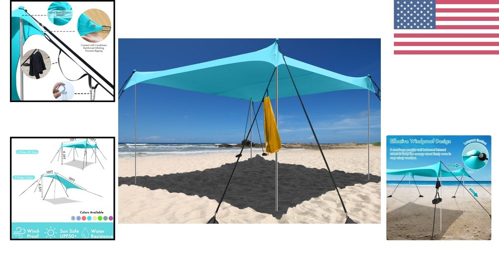Windproof Beach Shade with UPF 50+ UV Protection - Portable Family Tent 10x10ft ‹ › ‹ › ‹ › ‹ › ‹ › ‹ › ‹ › ‹ › Windproof Beach Shade with UPF 50+ UV Protection Portable Family Tent 10x10ft Features: Effective Windproof Design & High Durability: Equipped with 8 anchoring sandbags for superior stability and a patented grooved pole top design to prevent slipping. High-quality Materials: UPF 50+ UV protection and water-resistant fabric that blocks heat and shields your family from harmful sunlight. Easier Installation: Featuring reinforced fabric loops that allow for simple connections with carabiners while avoiding messy knots. Multi-function Hanging Loops: Comes with anchoring straps that include loops for towels, sunglasses, and other accessories; carabiner serves as a bottle opener. Easy to Carry: Lightweight and portable, perfect for families, couples, or small gatherings—available for 4, 6, or 8 people. Benefits: Provides a stable and safe environment, even in windy conditions. Enjoy the outdoors while being protected from harmful UV rays. Simple setup means more time relaxing and less time struggling with assembly. Versatile design allows you to keep your belongings safe and organized. Ultra-portable for easy transportation to the beach, park, or backyard. Why choose our Windproof Beach Shade? When it comes to enjoying sunny days at the beach or park, protection from the elements is essential. Our Windproof Beach Shade offers unparalleled durability and a host of thoughtful features designed for a memorable outdoor experience. With its UPF 50+ protection fabric, you'll feel confident knowing you and your loved ones are safe from the sun while you relax in the shade. What sets us apart is the comprehensive windproof design that can withstand even the strongest sea breezes, thanks to our innovative anchoring system. Don't settle for less; elevate your outdoor escapades with our elegantly designed beach shade tent. Order yours today! Shipping Free & Fast Shipping - We offer free shipping to most of the USA with a normal delivery time of 3-7 days. However, due to the current situation, additional delivery time (up to 3 weeks) may be required for some items. Alternative Carriers - We may use alternative carriers (e.g. USPS, FedEx, UPS, etc.) to ensure your package arrives safely and on time. Due to the use of multiple carriers, we are unable to provide a tracking number automatically. Handling Time - Orders are processed and shipped within 1-2 business days of receiving cleared payment. Shipping Restrictions - Shipping to Alaska, Hawaii, Puerto Rico, Guam, and other US territories may incur shipping charges or delivery restrictions. Please contact us before ordering, or your order can be refunded/cancelled. State Restrictions - There may be restrictions based on your state of purchase. For example, certain items may not be shipped to California due to state regulations. Contact for Tracking Updates - If you require tracking updates or have any concerns about the delivery of your order, please feel free to contact us, and we will be happy to assist you. Return 30-Day Hassle-Free Returns - We want you to be completely satisfied with your purchase. If you are not, you can return the item within 30 days of receiving it for a full refund or exchange. Easy Return Process - To start a return, simply contact us and we will provide you with a prepaid return shipping label and detailed instructions. Restocking Fee - There are no restocking fees for returns. However, the buyer is responsible for return shipping costs if the return is not due to a seller's error. Refund Processing Time - Refunds will be processed within 5 business days of receiving the returned item in its original condition. Payment We accept all major credit cards, PayPal, and Apple Pay for your convenience. Your payment information is secure and encrypted to ensure a safe and seamless transaction. Please complete your payment within 3 days of purchase to avoid any delays in shipping. Feedback Your feedback is extremely important to us. We strive to provide the best products and customer service possible. If you are satisfied with your purchase, please take a moment to leave us a positive review. If you have any concerns or issues with your order, please contact us before leaving negative feedback. We are committed to resolving any problems and ensuring your satisfaction. Contact Us If you have any questions or concerns, please feel free to reach out to our customer support team. You can contact us through the eBay messaging system. We are available Monday to Friday, 9:00 am to 5:00 pm EST, and we will do our best to respond to your inquiry within 24 hours. Thank you for supporting our small family business! UPC: Not Set Model: Beach Shade Tent Window Dimensions: Beach Shade Tent Unit Quantity: 4.86 kg Features: Portable,Effective Windproof Design,High Durability,8 Anchoring Sandbags,Reinforced Stitched Loop,Metal Carabiner System,Easier Installation,Multi-function Hanging Loops,Lightweight Design,UV Protection,Water Resistant Function,Heat Block up to 8-10 ℉ Material: Metal,High Stretch Fabric,Reinforced Fabric Loops Brand: Unbranded Type: Beach Tent Capacity: 4 Person Number of Doors: 1 Number of Windows: Not Set Number of Seasons: General Use Shape: Square Color: Turquoise MPN: Not Set Size: 10×10 ft Height: Not Set Width: Not Set Country/Region of Manufacture: Not Set Waterproof Rating: Water Resistant Length: Not Set Weight: 4.86 kg Unit Type: Not Set