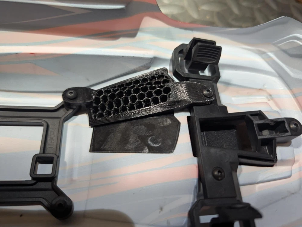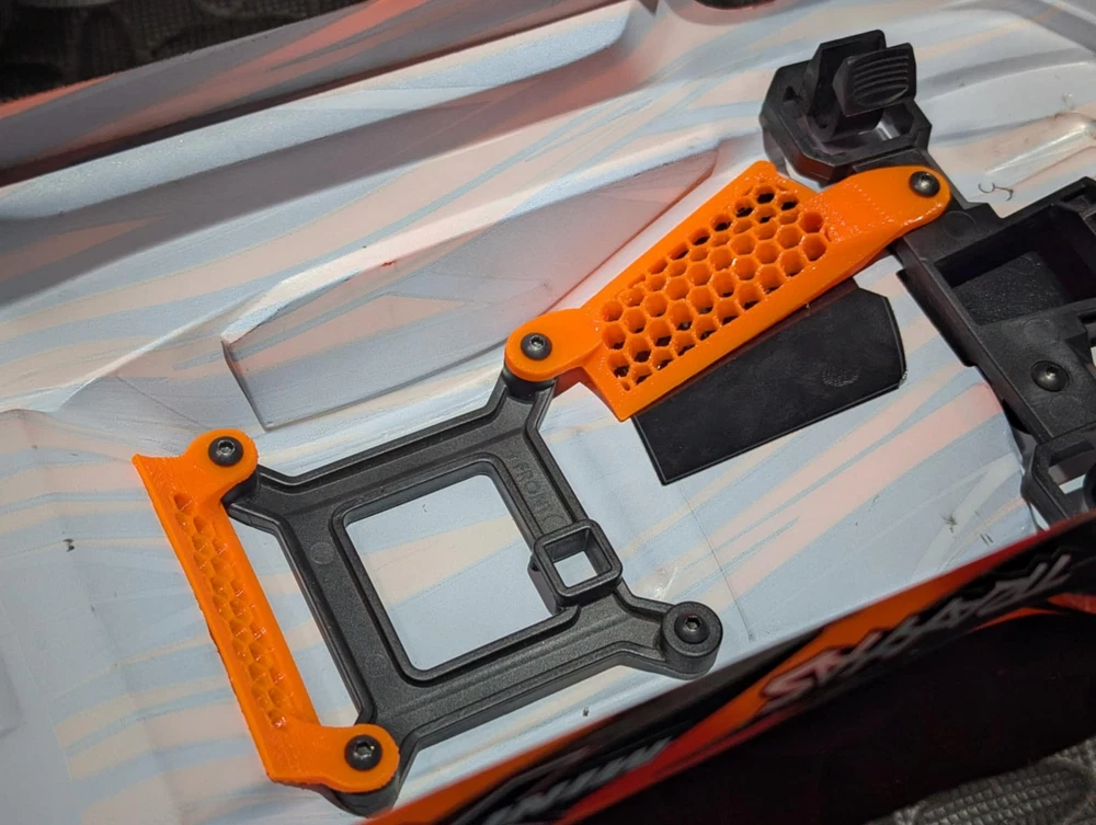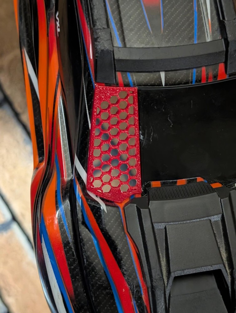Enhance the durability and cleanliness of your Traxxas Mini XRT with our Front and Rear Windshield Cover Set. These inserts help reduce the amount of dirt and debris that can enter the body during use, preserving the condition of your internal components. Designed for a precise fit, installation is simple-utilizing stock hardware and securing through the underbody roof skid. The front cover features a molded lip that fits neatly between the body and chassis, ensuring a secure hold without relying on basic press-fit or tape methods. Additional cooling methods are still recommended to avoid esc/motor from overheating! Mirrored window insert available upon request! What separates us from the competition? Simple, we use high grade and high quality 3D printers to ensure the best quality and strength for you! We test our mounts to ensure the best durability. Always taking custom requests! If you don't see it, let us know and we can work towards turning your idea into a reality!