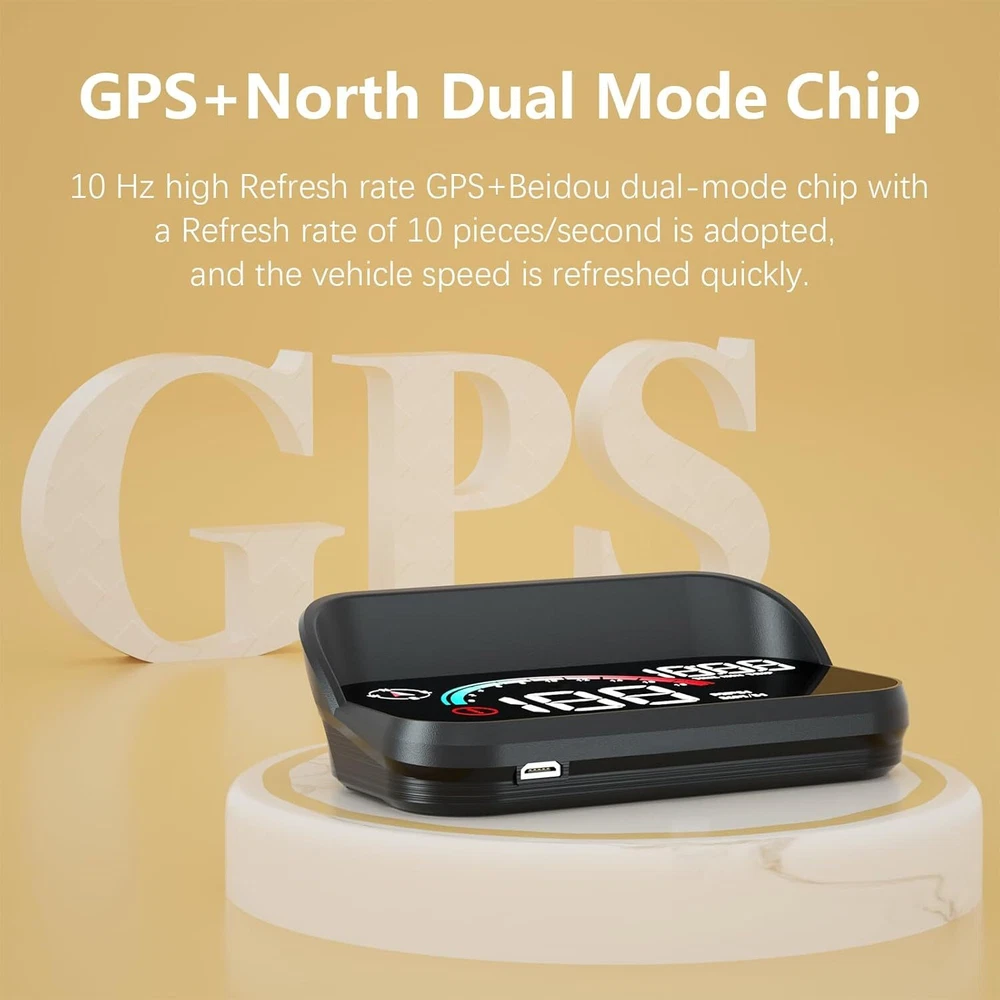 【What is M22 hud】M22 is a GPS mode flat screen display, unlike most flat screen displays on the market, our designers have made good use of the windscreen to turn M22 into a new windscreen HUD. 【Design Concept】This GPS speedometer is a novel design with a colour scheme for the first time. It presents important speed data to the driver at a glance and is simple to understand. 【Main Functions】The M22windshield speedometer projector displays speed, clock, travel time and distance travelled. It also has an over speed alarm function and a GPS compass to show the direction(The compass needs to locate the satellite before it can be used. You can try moving the car to an open road surface.). Speed is available in MPH and KM/H, which can be adjusted in the settings. When there is an over speed, the product will emit a beeping sound to remind the driver, which is like a safety supervisor, always reminding the driver to pay attention to driving safety, placing a beautiful M22 HUD in the car. 【Automated HUD】The advantage of the digital speedometer automation is that it turns on automatically when the car starts and turns off automatically when the car is switched off, which is very convenient and you don't have to worry about the product not being able to turn off. A gentle reminder, if you are not driving for more than a week, please remove the product and put it in the drawer. 【Instructions for use】 Our product is easy to install, plug and play, just use the usb cable included in the product to connect the car and the product, start the engine to power on and use. When you notice the small icon on the product flashing continuously, it means the product is collecting satellites, the speed will only be displayed when the device searches for satellites. 【Note】Please note the following three important information, ①In garages, overpasses and dense buildings will affect the search speed ②When the same GPS device is installed in your car, it will also affect the search speed of this product, i.e. two GPS devices cannot be placed together ③When your car has metal film, it will also affect the search speed of this product. 【Reminder】Inaccurate speed: Check if the unit is correct, kilometers (KM)/miles (MPH), (refer to the 5 settings for speed unit switching). You can also adjust the vehicle speed, such as the instrument displaying 100 km/h and the machine displaying 105 km/h. Adjust the parameter value to 102. During the day, the data cannot be seen clearly and there is a reflection: stick a reflective film to make the data reflect on the reflective film. You can also enter the fourth setting to adjust the brightness. 0 is the automatic light sensing mode, and 1-11 is the manual adjustment. You can manually increase the brightness.