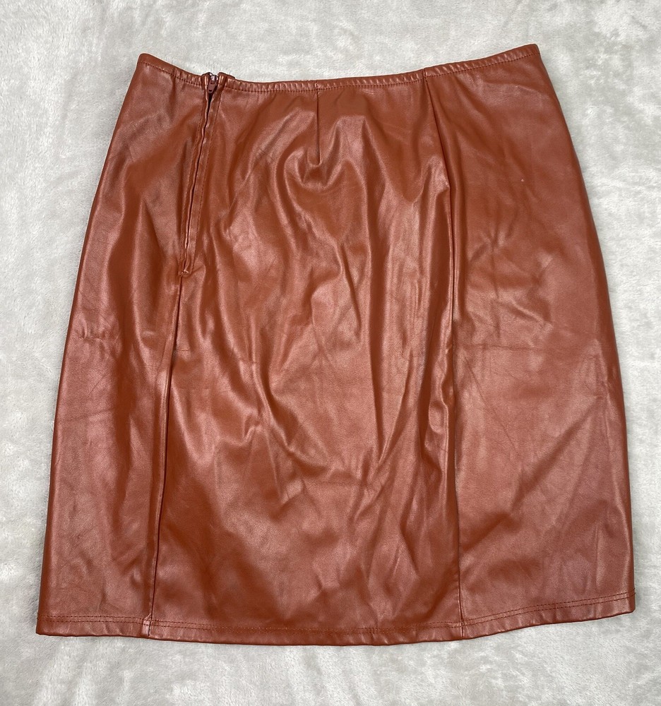 Elevate your style with the Windsor That's A Wrap Faux Leather Mini Skirt. This skirt is perfect for women who want to make a bold fashion statement. The skirt is made of high-quality faux leather and comes in a stunning cognac color that will complement any outfit. The wrap style adds a touch of sophistication and the skirt is designed to fit regular size L. The skirt is perfect for a night out with friends or a special occasion. It's short and trendy, making it a must-have in every woman's wardrobe. The skirt is available in the Clothing, Shoes & Accessories, Women, Women's Clothing, Skirts categories. Add it to your collection today and be the envy of everyone in the room.