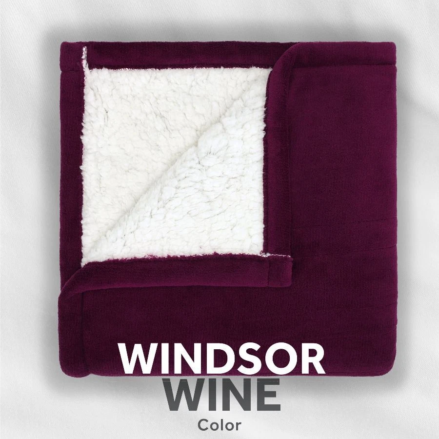 Windsor Wine Microplush Sherpa/Faux Shearling, Electric Heated Blanket