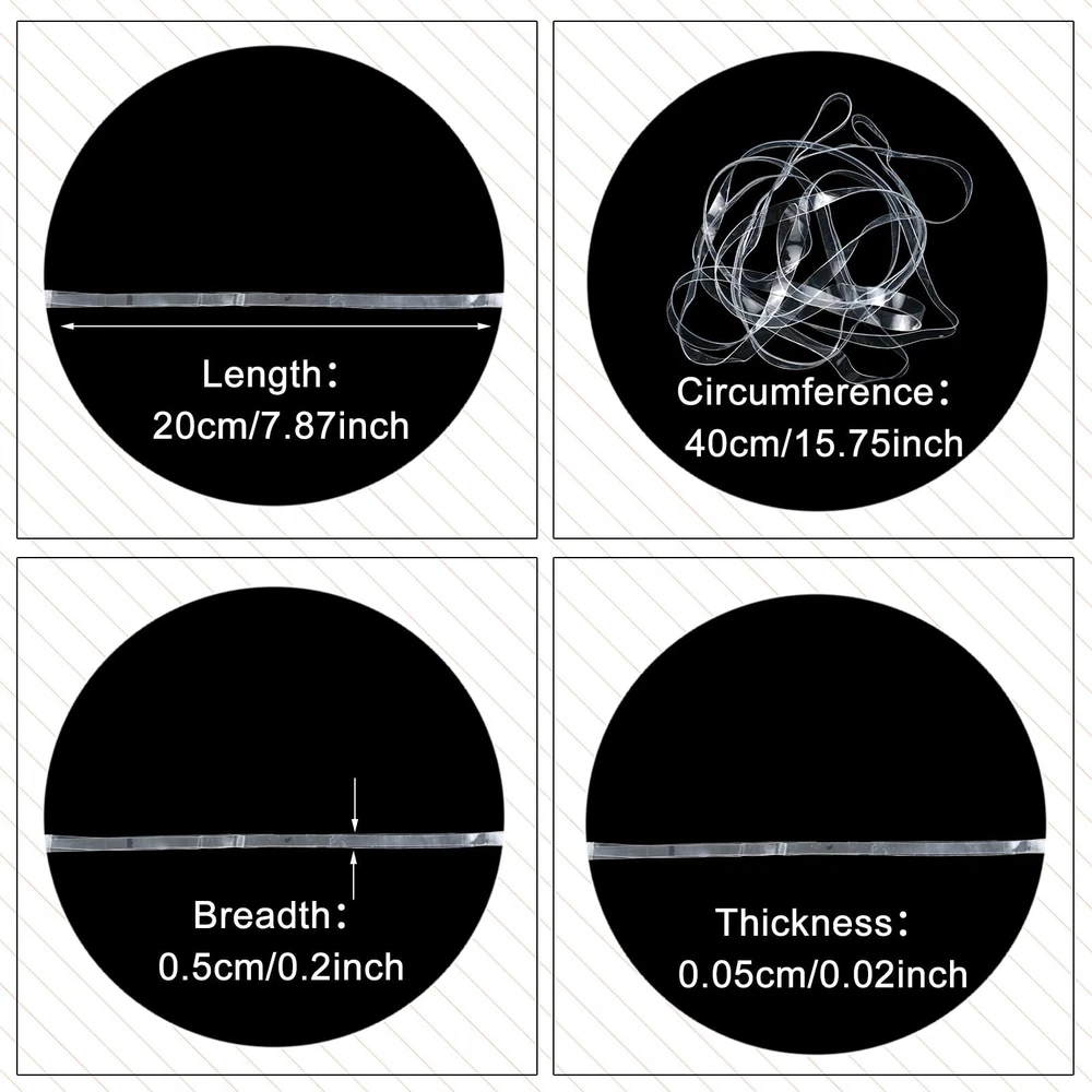 Features:If your trash can is too small, you can bind the transparent rubber bands several times to enhance its stability and tightness. Large garbage bags are easy to slide out of the original position, which will to garbage and debris into the trash can, causing confusion. So these elastic rubber bands will be a nice helper to keep your kitchen or bathroom space clean and tidy.Specifications:Quantity: 50 pieces Color: transparentMaterial: TPU materialSize: Circumference: approx. 40 cm/ 15.74 inch Width: approx. 0.5 cm/ 0.2 inchPackage includes:50 x Rubber bandsWarm notice:Please allow a little error on the size due to manual measurement.Children should use under adult's supervision. Package contents: there are 50 pieces of rubber bands in transparent color, which are sufficient for you to use and replace in daily life, bringing a lot of conveniences to your life, you can also share some of them with your families or friends Nice performance: these trash can large rubber bands are made of TPU material, which is durable and elastic, smooth and safe to use, reusable and waterproof, thick and not easy to break, can be applied for a long time About size: each rubber band measures approx. 40 cm/ 15.74 inches in circumference, 0.5 cm/ 0.2 inches in width, which is proper in size and suitable for trash cans up to 8 inches, please check the size carefully before purchasing Widely applicable: these elastic trash can bands can be applied to bundle trash cans, you can use them in the kitchen, bathrooms, bedrooms, office and even the garage, with transparent color, these elastic rubber bands hold practical functions without affecting the beauty Various usages: with nice elasticity and stretchability, these office rubber bands are also suitable for bundling carpets and mats, BBQ grilling covers moving and shipping boxes or securing any other objects, you can also use them to DIY art crafts, just use your imagination