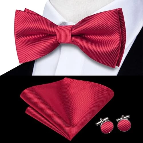 $ 8.01Bow Ties for Men Pre-Tied Pocket Square with Cufflinks Red Black Silver Plaid