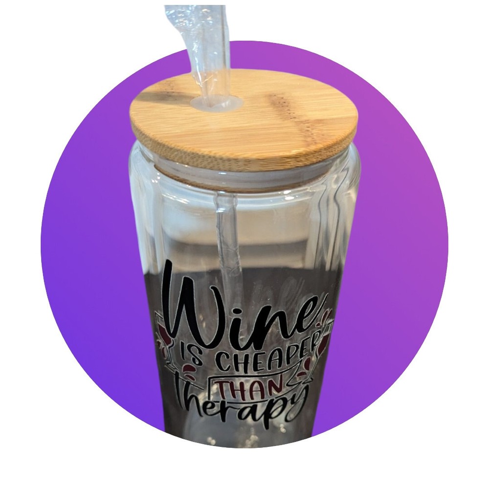 Description: Sip in style with this Glass Can Snow Globe Double Wall 20 oz Tumbler , featuring the playful slogan, "Wine is Cheaper Than Therapy"! Perfect for wine lovers and anyone who enjoys a little humor with their drink, this unique tumbler is designed with a double-wall structure to keep your beverages at the perfect temperature while adding a fun snow globe effect. Whether you're enjoying wine, cocktails, or any cold beverage, this 20 oz tumbler is ideal for both casual sipping and festive gatherings. The double-wall insulation helps to keep drinks cold longer while preventing condensation, making it a practical yet stylish choice for everyday use or as a thoughtful gift. Features: Material: High-quality glass with a double-wall design Capacity: 20 oz, ideal for wine, cocktails, or any cold beverages Design: Fun snow globe effect with the slogan "Wine is Cheaper Than Therapy" Insulation: Double-wall construction keeps drinks cold longer and prevents condensation Lid: Spill-resistant lid for easy, on-the-go use Perfect For: Wine lovers and humor enthusiasts Unique drinkware for parties, picnics, or everyday use Fun gifts for friends, family, or co-workers Keeping drinks cold and stylish at the same time Add a little sparkle and humor to your day with this Glass Can Snow Globe Double Wall 20 oz Tumbler —because "Wine is Cheaper Than Therapy" and your drinkware should be as fun as your wine!