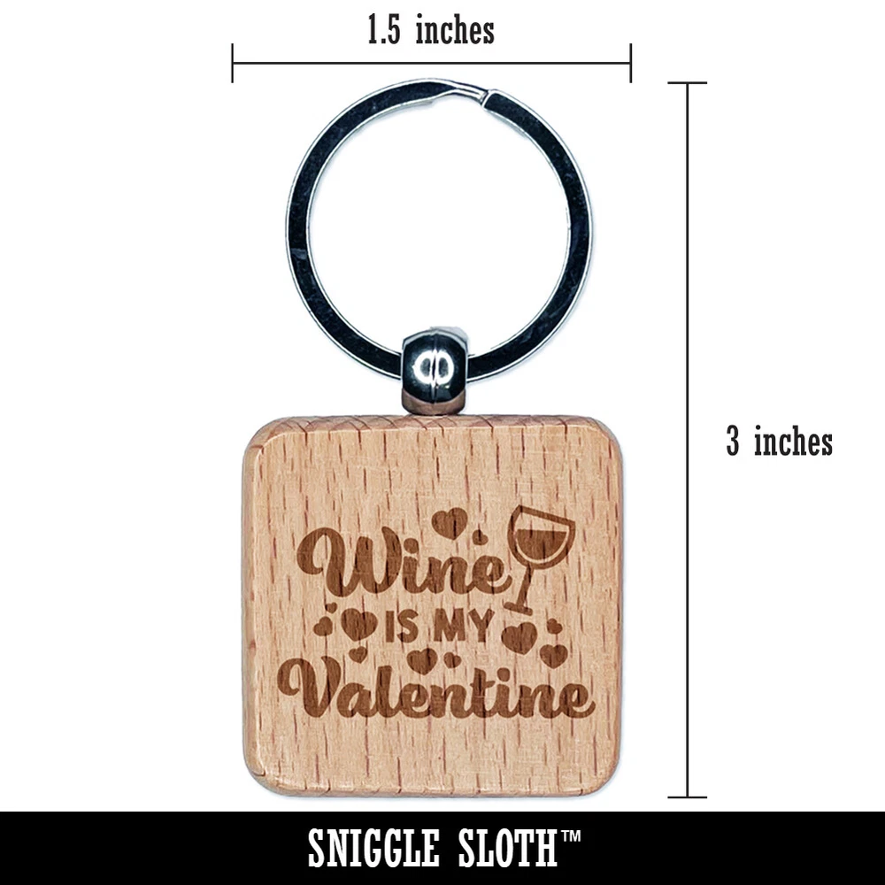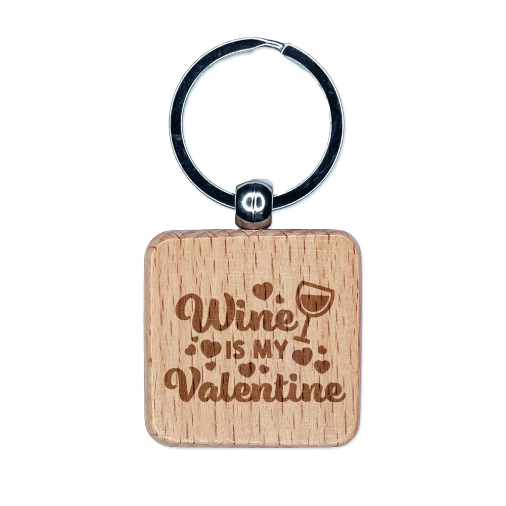 Wine is My Valentine Valentine's Day Engraved Wood Square Keychain Tag Charm