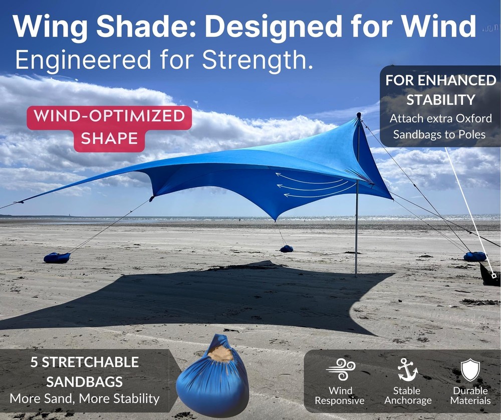 Wing Shade Beach Tent Sun Shelter - Large Portable 10x10 Pop Up Beach Canopy,...