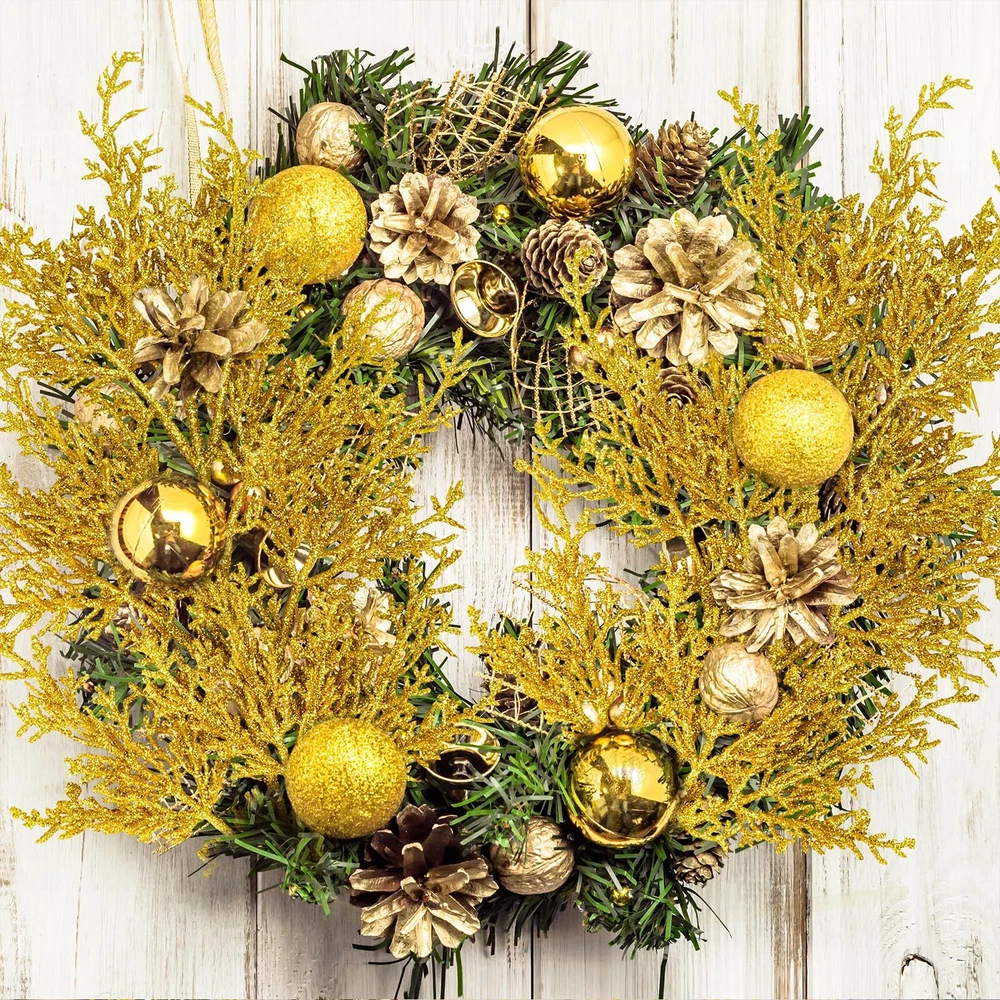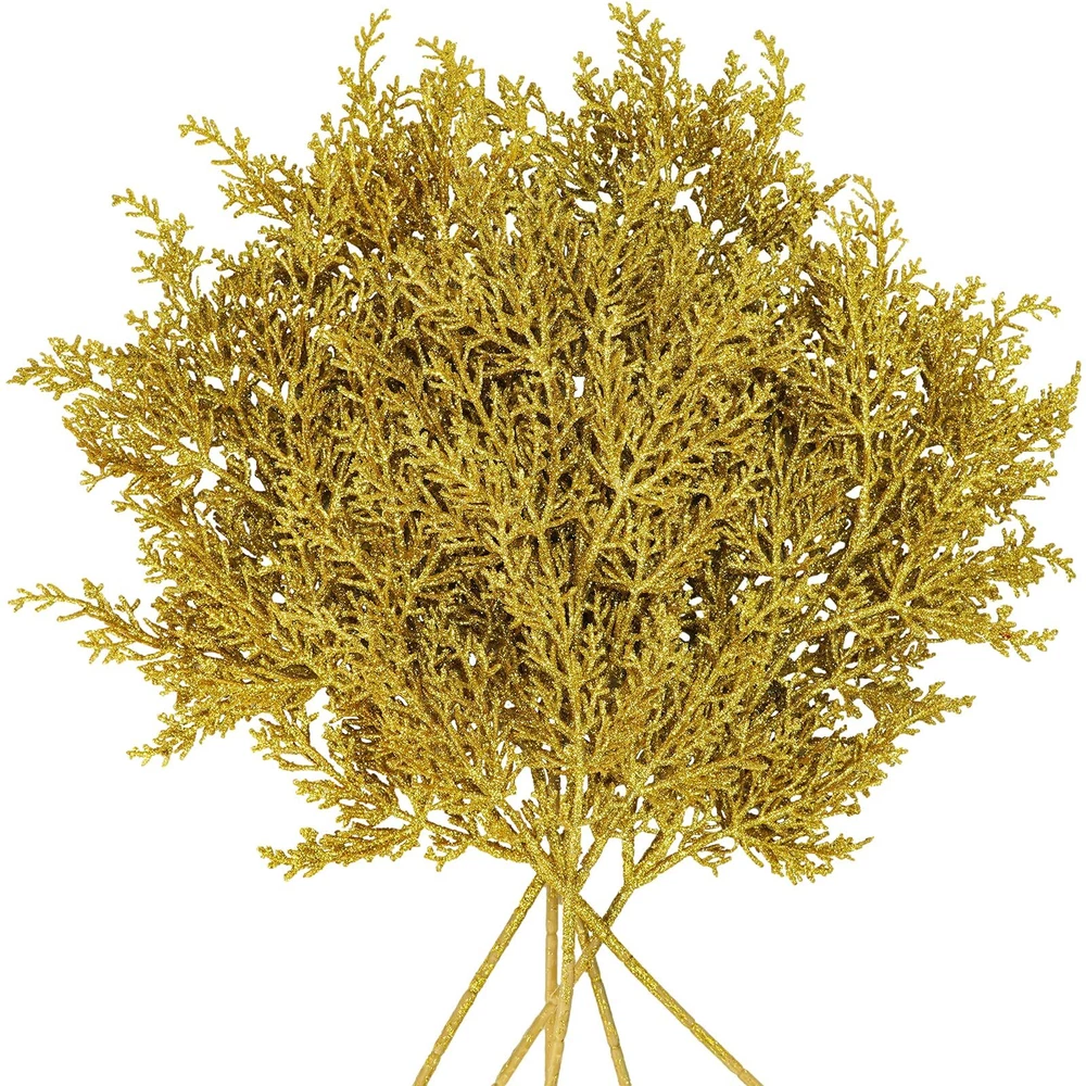 Winlyn 6 Pcs Gold Glitter Artificial Cedar Spray Christmas Floral Arrangement...