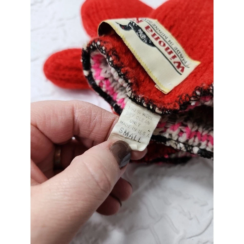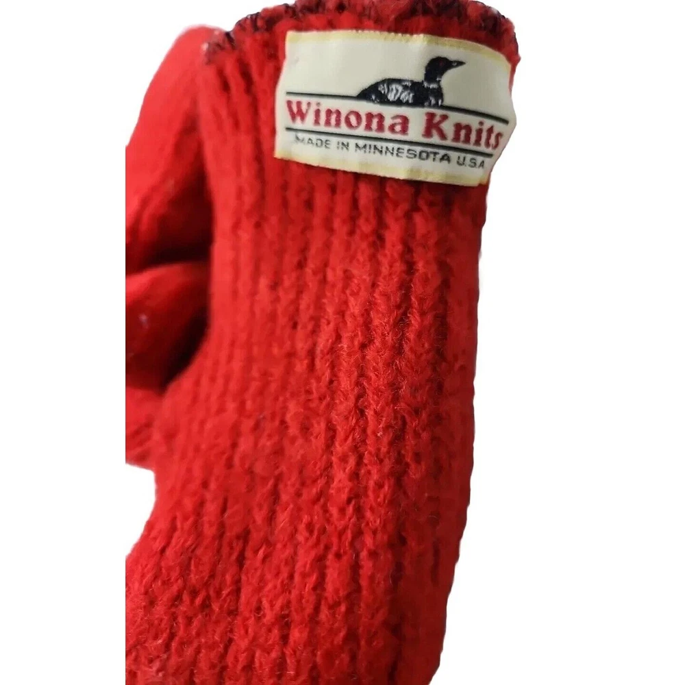 SEE PHOTOS WOOL DOES NEED REPAIR Stay cozy and stylish this winter season with these Winona Knits wool blend mittens. These warm mittens are perfect for cold weather and are made in the USA. The multicolor exterior color and USA theme make these mittens a unique addition to any outfit. The mittens are made with a wool blend material and have stretch features for added comfort. They are sized small and are ideal for women. These mittens are perfect for anyone who loves warmth and fashion.