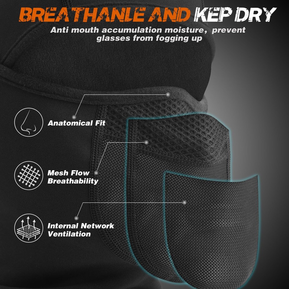 Full Coverage Ski Mask: The balaclava ski mask designed for full coverage, it can always keep your head, neck, ears, and face warm and comfortable during the cold weather of winter. Breathable & Glasses Hole Design: The mouth part and nose parts design with breathable mesh to minimize moisture collection inside the ski mask, effectively prevents googles from fogging up while breathing. The ear holes design make wearing glasses/goggles much easier. Multifuctional Balaclava: balaclava face mask can be worn as an open or closed balaclava, pirate hat, full & half face mask and neck gaiter. It can be used alone or as additional face protection under helmet. Meet different daily wear needs, you can adjust it according to your own needs. Universal Size: Our new upgraded balaclava designed with elastic full coverage, you will not feel very tight or loose when wear it. It can accommodate different head sizes and shapes. The fashionable unisex design fits for both men and women. Great Choise for Outdoor Activities: Warm balaclava scarf mask hood is practical and has excellent breathability, wicking, perspiration and abrasion resistance. Great for various winter activities such as skiing, snowboarding, motorcycling, hiking, running, working outside etc. Full Coverage Ski Mask: The balaclava ski mask designed for full coverage, it can always keep your head, neck, ears, and face warm and comfortable during the cold weather of winter. Breathable & Glasses Hole Design: The mouth part and nose parts design with breathable mesh to minimize moisture collection inside the ski mask, effectively prevents googles from fogging up while breathing. The ear holes design make wearing glasses/goggles much easier. Multifuctional Balaclava: balaclava face mask can be worn as an open or closed balaclava, pirate hat, full & half face mask and neck gaiter. It can be used alone or as additional face protection under helmet. Meet different daily wear needs, you can adjust it according to your own needs. Universal Size: Our new upgraded balaclava designed with elastic full coverage, you will not feel very tight or loose when wear it. It can accommodate different head sizes and shapes. The fashionable unisex design fits for both men and women. Great Choise for Outdoor Activities: Warm balaclava scarf mask hood is practical and has excellent breathability, wicking, perspiration and abrasion resistance. Great for various winter activities such as skiing, snowboarding, motorcycling, hiking, running, working outside etc.