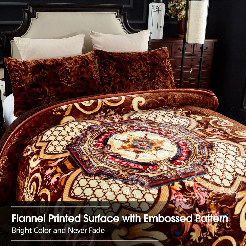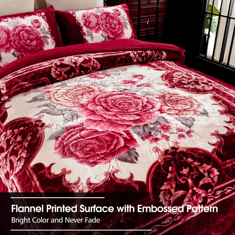 Payment Shipping Return policy About us Store category Other Blankets & Throws Quilts set Comforters & Sets Duvet Covers & Sets Mattress Pad & Protector Sheet set & Pillowcases Home Accessories Sign Up Now ! You may also like Sale Winter Blankets Grey Teal Froral Super Soft Sherpa 3 Ply Quilt With 2 Shams Product Description More Details Ply: 3 Ply Surface Material: flannel fleece Filled Material: polyester Reverse Material: Sherpa Pattern Design: Printed Embossed Size of Blanket: 79" x 91" Size of Pillow Sham: 18" x 30" Weight: 8 lbs. Package Included: 1 x Blanket, 2 x Pillow Sham Color&Pattern:Solid Colors /Printed colors Kindly Note: This is a Korean style blanket. All sizes are designed by standard Asia size, which is smaller than the US standard size. If you want to enjoy an oversize style blankets, please check our dimensions carefully or select a bigger size than your actual bed size. Thank you. Blanket Features: Soft and Warm - The Flannel Blanket with Sherpa reverse is extremely soft and warm .Keep you warm in the chilly winters . Traditional Pattern - beautiful traditional pattern with flowers and leaves all around Strong water absorption : Sherpa is effective in ricking away moisture .Keep you warm and dry in winter . Easy to Care - The plush cozy blanket is machine washable in gentle/delicate cycle, tumble dry on low. Payment Delivery details Return About us Contact us Payment We use eBay Managed Payment so that you could safely and securely pay via the following methods: Visa Master card Discover PayPal PayPal Credit Apple Pay (through the eBay app and mobile website only) Google Pay (through the eBay app, mobile website and desktop) Delivery details We offer One-day Handling time ,and it will takes about 3-6 days for shipping by USPS ,UPS or Fedex. If you have question about the shipping ,kindly contact us via Ebay Message , all messages will be replied timely . Return We accept change of mind return with 30 days ,so kindly shop with confidence . Any question ,please contact us via eBay Message . About us As a factory based supplier ,we always supply goods with affordable prices .All the items are in our local warehouse in CA . Continuous new designs will be launched ,subscribe our store and enjoy shopping here . Contact us Please contact us via eBay messages ,and you will get a reply promptly. Payment Shipping Return policy About us Ply: 3 Ply Surface Material: flannel fleece Filled Material: polyester Reverse Material: Sherpa Pattern Design: Printed Embossed Size of Blanket: 79" x 91" Size of Pillow Sham: 18" x 30" Weight: 8 lbs. Package Included: 1 x Blanket, 2 x Pillow Sham