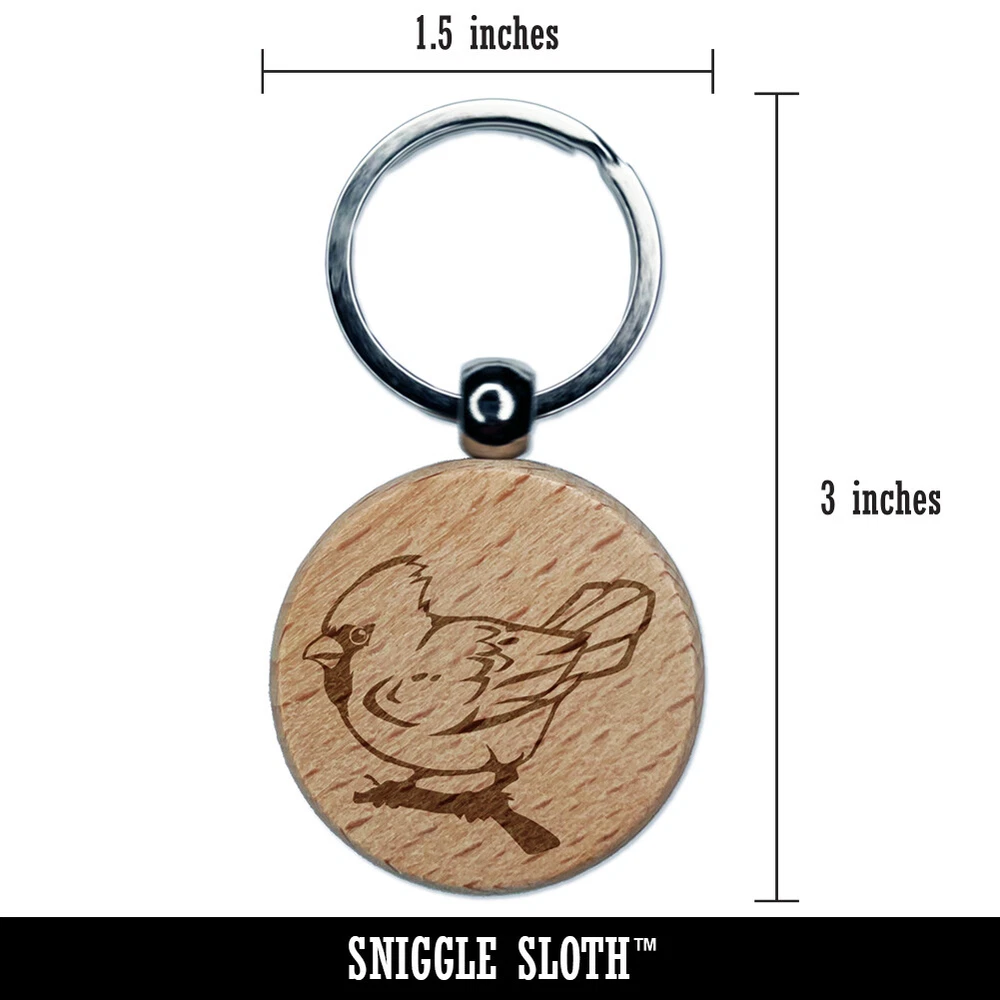 Winter Cardinal on Branch Engraved Wood Round Keychain Tag Charm