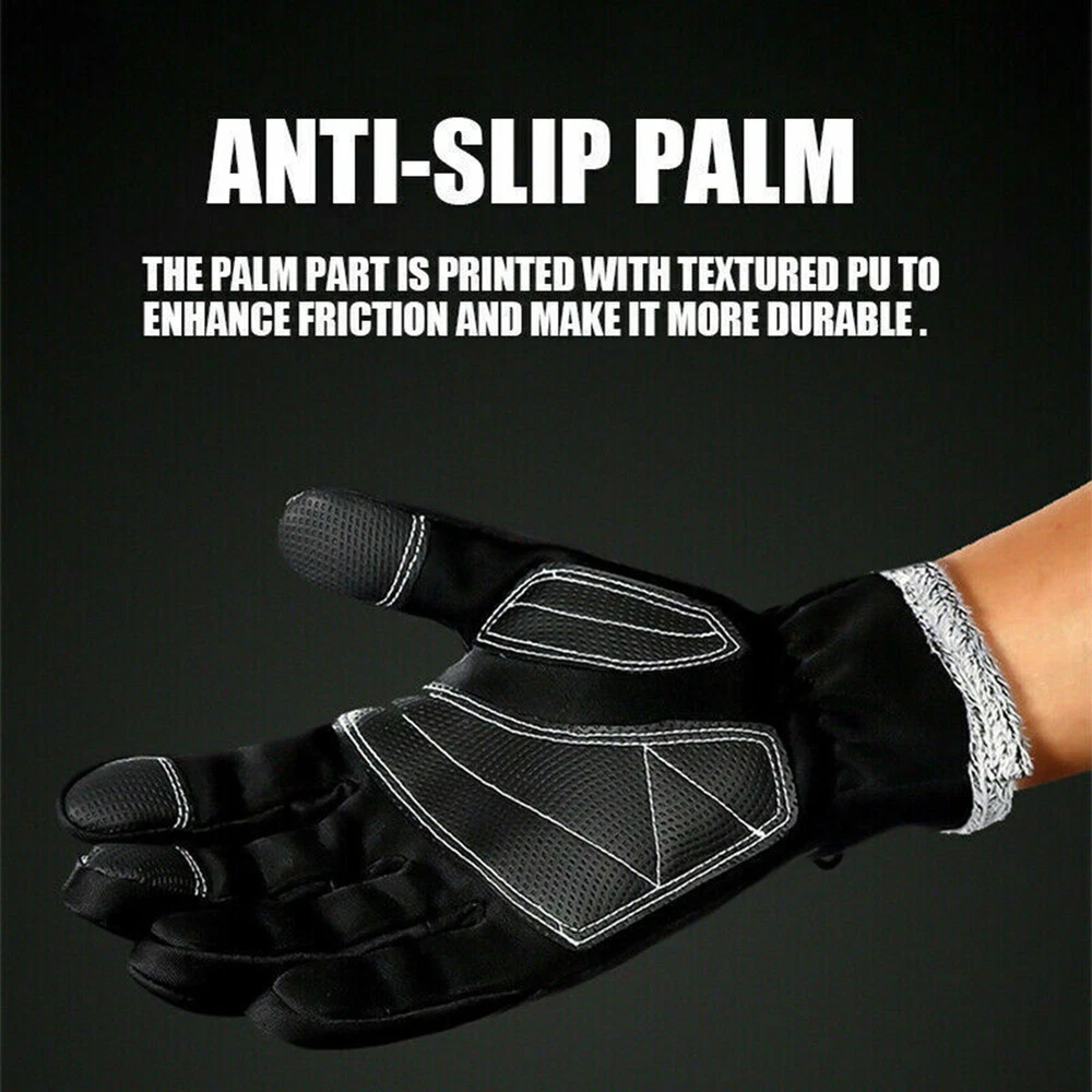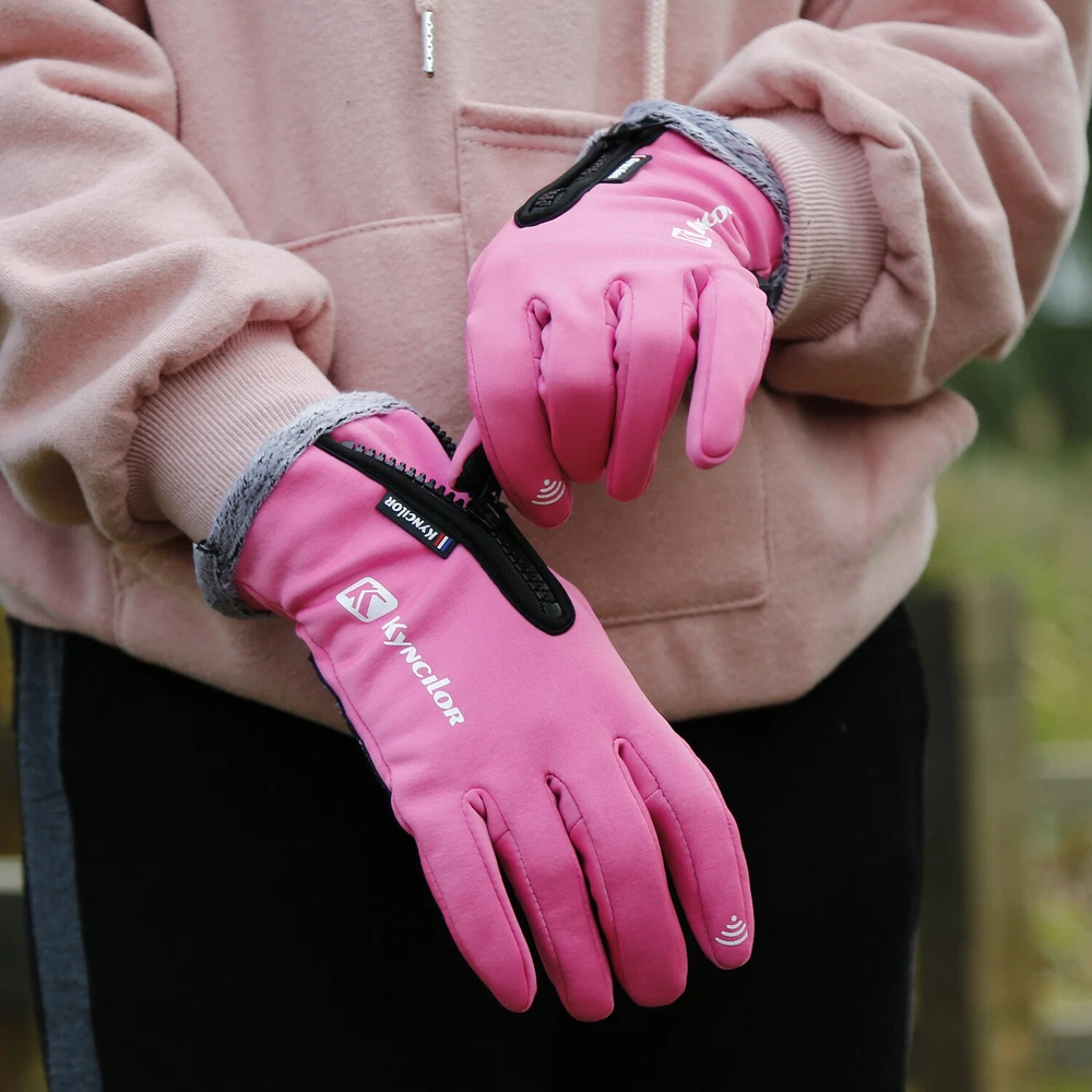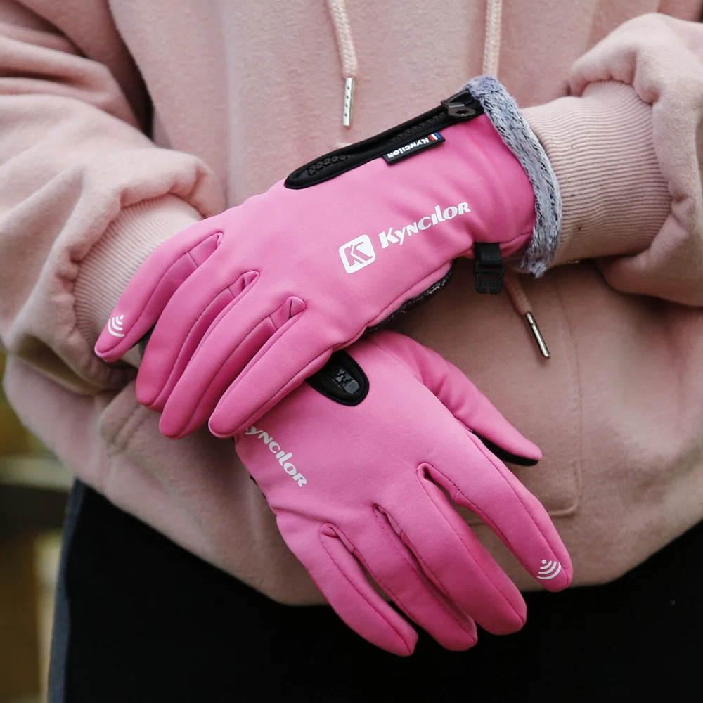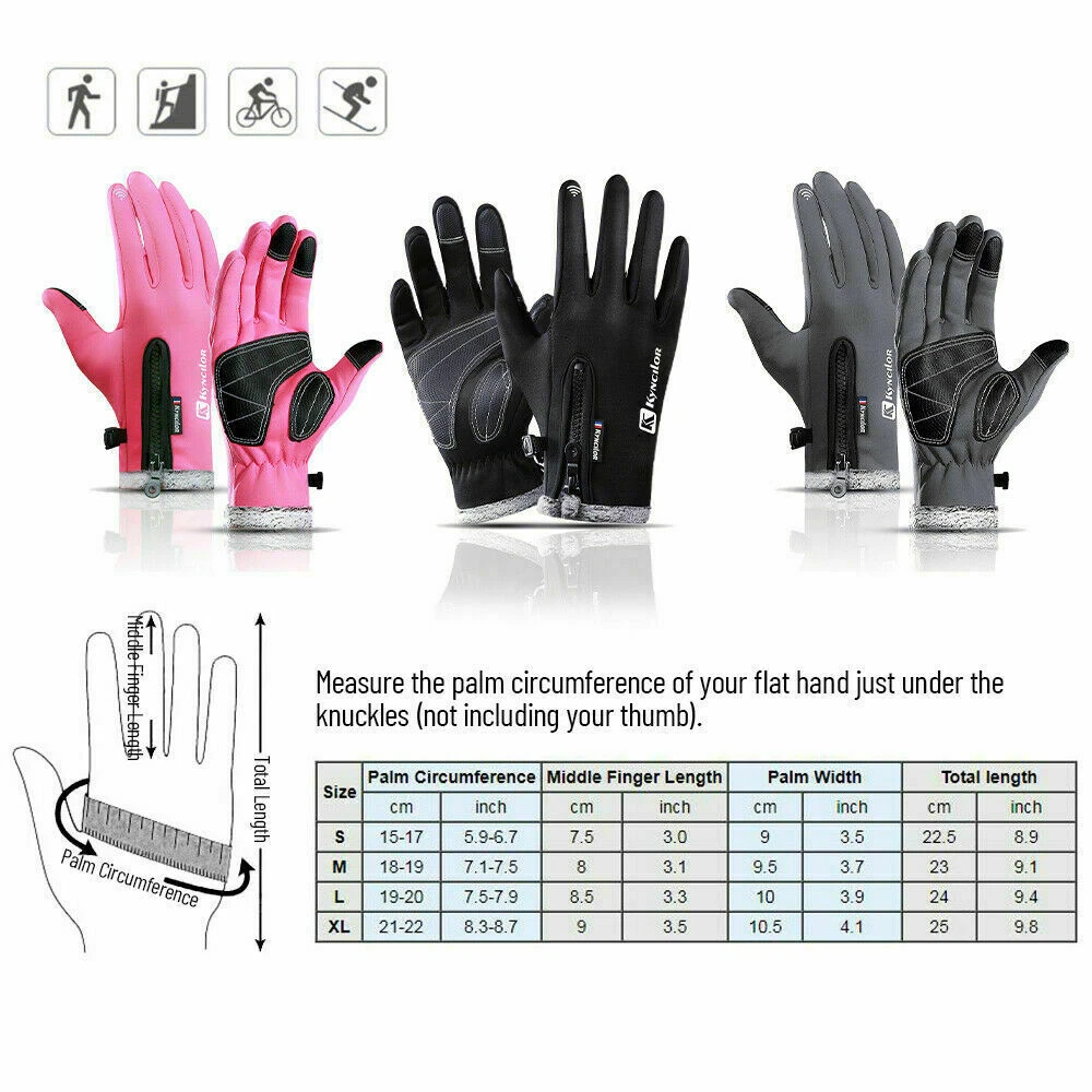 Product Description Features: 1. Double Fleece Liner - winter gloves are built in double fleece liner,three insulation fabrics winter gloves protect you against the subzero temperatures of cold winter days. Double shirred elastic wrist with zipper keeps the glove closed around your skin and keeps dirt, debris, snow and cold wind out in winter outdoor sports. 2. High Sensitivity Touchscreen - The Touch Screen Gloves Coated with touch conductive material on the thumb and index finger part,allows you to use phone,tablet,smart watch,car"s touchscreen panels ithout exposing your hand in the cold weather but keep your fingers warm and dry while you use your devices. 3. Anti-slip Design - Anti-slip silicone design on the palm patches and fingers for a better grip even in rainy days, abrasion resistant and anti-skid, offering better use experience for work.Outdoor sports gloves perfect for running, cycling, climbing, riding, hiking, driving, shooting fishing. 4. Windproof & Warmth - Cycling gloves are sewn in high quality water Resistant TPU which can keep hands warm and dry even in snow or light rain when you are cycling, running or daily wear.Please note that the fabric of shell is waterproof, but the seams and tips of the thumb and index finger is not waterproof.Do NOT get wet for a long time. 5. We Have Thin Glove But Very Flexible And Suitable For Winter Sports, And There Also Have Heavy Duty Winter Gloves, Suitable For Snow Sports, Such As Skiing And Snow Work That Cold-Resistant Ability Can Reach Up -30 F. Specification: Material: Composite elastic fabric, skid silica particles Weight: Approx. 3oz Color: Black / Grey / Pink (optional) Glove Type: Full finger glove Season: Winter Function: Windproof, Water Splash-proof, Touch Screen Size (palm width): M for the palm width about 8.5-9cm, L for the palm width about 9-9.5cm, XL for the palm width about 9.5-10.5cm Package Inluded: 1 Pair of Winter Full Fingger Warm Gloves