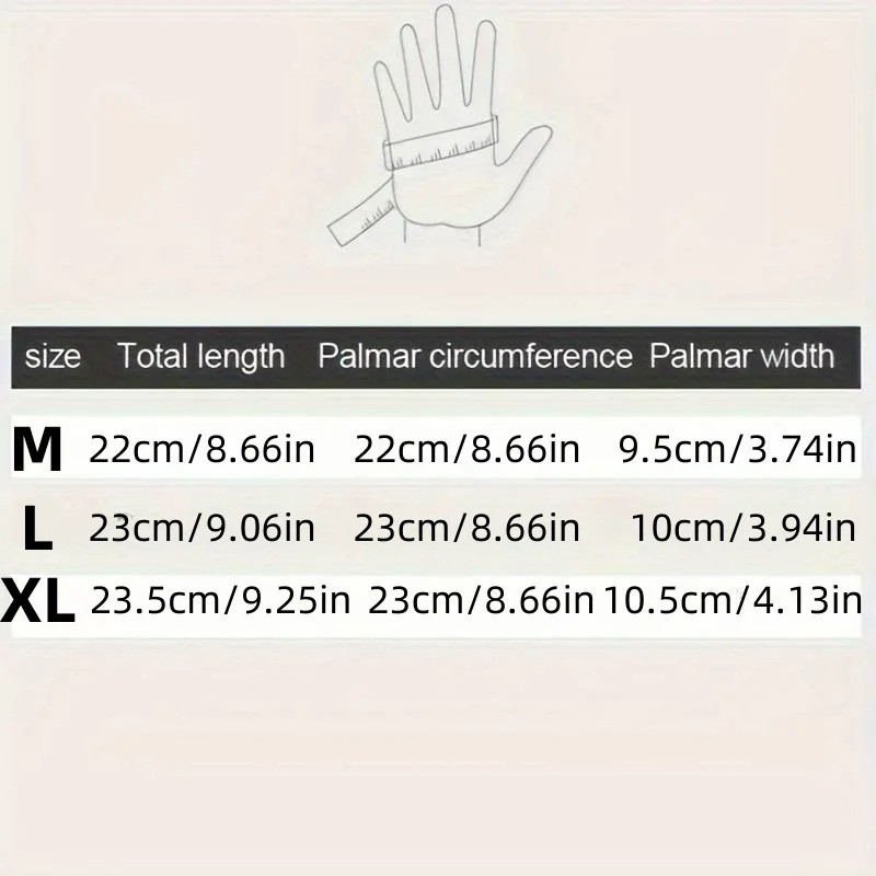 Specifications Types of Glove With Fourchettes Craft of Weaving Knit High-concerned chemical None Cycling Jersey Pad Style Domestic Pants Pad Type Full Finger Feature Winter warmth Gender Universal Material POLYESTER Origin Mainland China Item Type Gloves & Mittens Sport Type cycling π§€ Winter Waterproof Gloves β Touchscreen, Windproof & Warm (Unisex) βοΈ Stay protected and comfortable in cold weather with these high-performance winter gloves . Designed for snowboarding, motorcycle riding, driving, cycling, and daily outdoor use , they combine warmth, grip, and touchscreen convenience in one stylish design. π Key Features π§₯ Durable Synthetic Leather & Polyester High-quality materials provide excellent durability, protection, and long-lasting comfort. π§ Waterproof & Windproof Water-resistant outer fabric blocks rain, snow, and cold wind to keep your hands dry and warm . π± Touchscreen Compatible Fingertips Conductive leather on the thumb, index, and middle fingers allows smooth smartphone and device use without removing gloves. π€ Anti-Slip Grip Silicone particles on palms and fingers offer strong grip and abrasion resistance , improving safety while driving or riding. π Zipper Cuff Design Easy to put on and remove while sealing out cold air and water for added warmth. π§Ό Anti-Static Feature Helps prevent dust attraction, keeping gloves clean and comfortable. π« Unisex Universal Fit Suitable for both men and women. π Product Specifications Color: Black Sizes Available: M / L / XL Material: Polyester (Synthetic Leather Finish) Glove Type: Full Finger Season: Winter Closure Type: Zipper Features: Warm, shockproof, windproof, waterproof Weight: Approx. 85g Handwear: Two-handed π Size Chart Size Total Length Palm Circumference Palm Width M 22cm / 8.66in 22cm / 8.66in 9.5cm / 3.74in L 23cm / 9.06in 23cm / 8.66in 10cm / 3.94in XL 23.5cm / 9.25in 23cm / 8.66in 10.5cm / 4.13in π₯ Additional Comfort Features π§£ Polar Fleece Lining β Soft, breathable, and highly insulating π¬οΈ Windproof Fabric β Blocks cold air effectively π‘οΈ Shockproof & Durable Design β Built for active outdoor use π¦ Package Includes π¦ 1 Γ Pair of Winter Gloves π― Perfect for snowboarding, motorcycling, driving, cycling, outdoor work, and daily winter wear Stay warm, stay connected, and stay safe this winter! βοΈπ§€