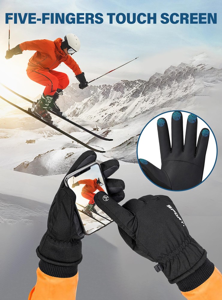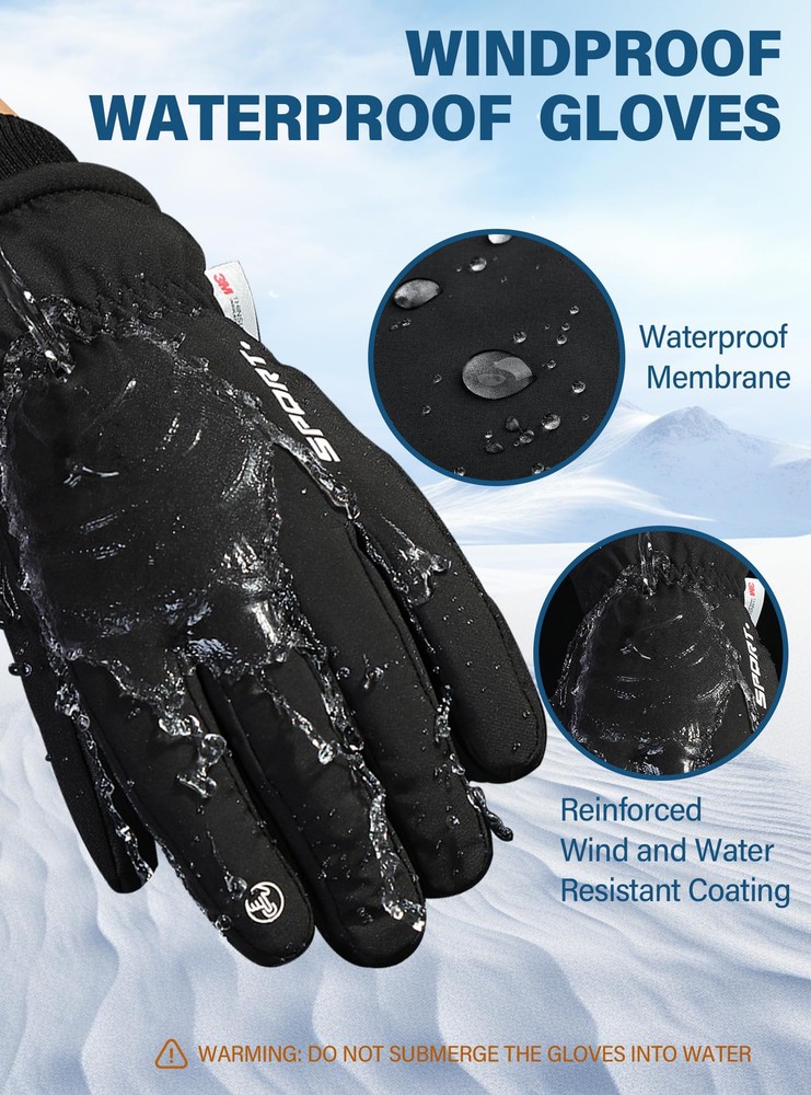 3M THINSULATE: Winter gloves are made of high-quality 3M cotton, which can lock in heat and keep it warm. The windproof shell and extended windproof cuffs can prevent cold wind from entering and protect your fingers from the interference of cold weather WATER REPELLENT: We designed a fine weave on the back of the hand to form a water-repellent shell, which can effectively block the intrusion of water and can meet the use of outdoor activities in rainy and snowy weather, and keep the warmth inside at all times. But be careful not to put the gloves into the water EXCELLENT TOUCH SCREEN: The leather material of the palm part not only gives the gloves a good grip, but also allows the gloves to have a five-finger touch screen performance, so you can use electronic devices anytime and anywhere without taking off the gloves COMFORTABLE LINING: The lining of the gloves is mixed with delicate thermal insulation materials and 3M cotton, so that the gloves can ensure warmth while ensuring comfort, allowing you to enjoy every moment of wearing gloves GOOD WINTER PARTNER: winter warm gloves have both performance and classic appearance, suitable for skiing, snowboarding, cycling, running, hiking, motorcycle riding and other outdoor activities, and can also meet daily wear, can meet your needs in different scenarios
