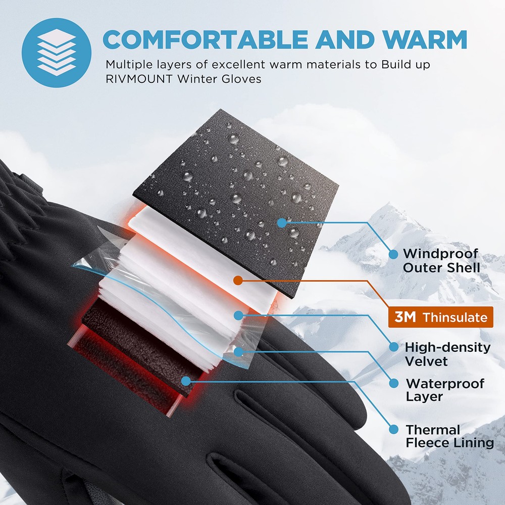 【Keep Warm, Windproof】 As the Upgrate product, womens winter gloves integrate stylish and performance. Skin-friendly windproof fabric outer, lightweight and breathable 3M C40 thermal thinsulate insulations provide hands added warmth, soft and dense lining, combined with the adjustable windproof cuff to keep snow and ice from getting inside, increasing the force for the cold resistance. Keep your hands warm and comfortable in freezing winter. 【Sensitive Touchscreen】The fingers of these winter snow gloves features an upgraded touch conductive fabric that allows you to sensitively touch the touchscreen of any smart device without removing your gloves. This design keeps your hands warm and allows you to operate the phone when you have an important call or want to take a photo of a beautiful landscape. 【Anti-Slip Palm Design】Covered with No-slip design of soft PU on the palm, which effectively increases the grip and abrasion resistance of ihuan thermal winter gloves. You can grip things firmly to ensure safety. Such as gripping the steering wheel firmly when driving, and holding your phone well to prevent it from falling and breaking. 【Multi Occasions & Great Gifts】Light, Soft and Not Bulky, this warm winter gloves are designed for all kinds of outdoor sports, daily life and work. Perfect for running, cycling, riding, hiking, driving, skiing, running, climbing, snowboarding, shoveling,camping and walking dogs,outdoor chores etc. This winter gloves women and men, with high quality and multi-functions, it surely be a perfect gift for your friends and family. 【Great After-Sales Service】Our winter gloves with touchscreen fingers for men and women is lightweight, Anti-slip, windproof and upgrade warmer, they are definitely worth your money.IF you have any questions or after-sales problems with this winter ski gloves, please contact us, we are always here to provide great after-sales service, so you can try it without risk.