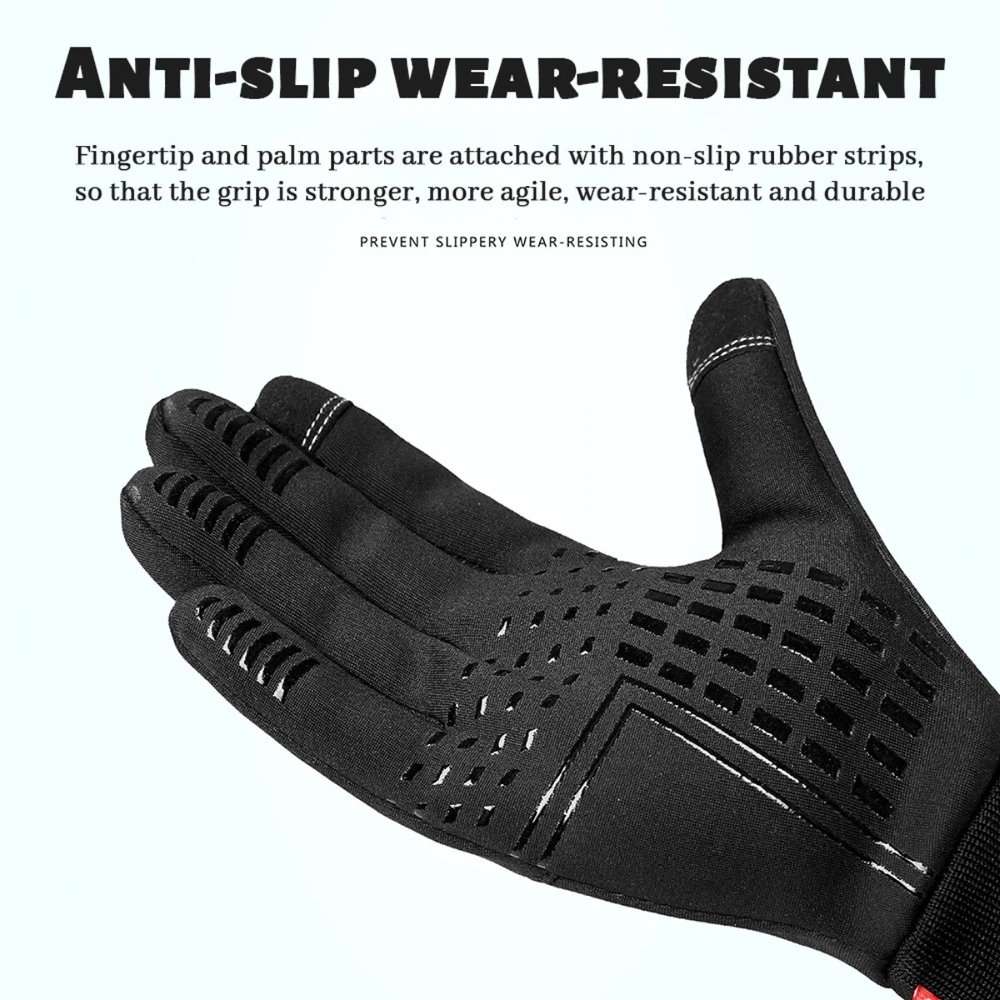 Features: 1. The palms and fingers have anti-slip patterns to effectively increase the grip and abrasion resistance of the gloves, shock absorption, anti-slip, and safer riding. 2. The tip of the thumb/index finger is made of conductive fiber cloth, for touching screen without taking off the gloves. 3. High-density fabric has good wind-proof effect, and it will not ventilate when going against the wind. It is equipped with a temperature-locked wrist to gather heat and keep warm. 4. The super soft velvet lining design not only provides heat insulation, also effectively resists the cold wind and has better warmth retention. 5. Nylon technical fabric, lotus leaf design, automatic condensation of water droplets, and high-density seams to strengthen the prevention of rainwater leakage Description: 1. Material: Nylon + Silicone 2. Size: M/L/XL 3. Weight: About 75g/Pair 4. Advantages: Touch Screen/Warmth/Non-slip and Wear-resistant Package Includes: 1 Pair of Winter Gloves NOTE: The product may vary slightly in color and measurement from what the pictures show, which does not affect the use.