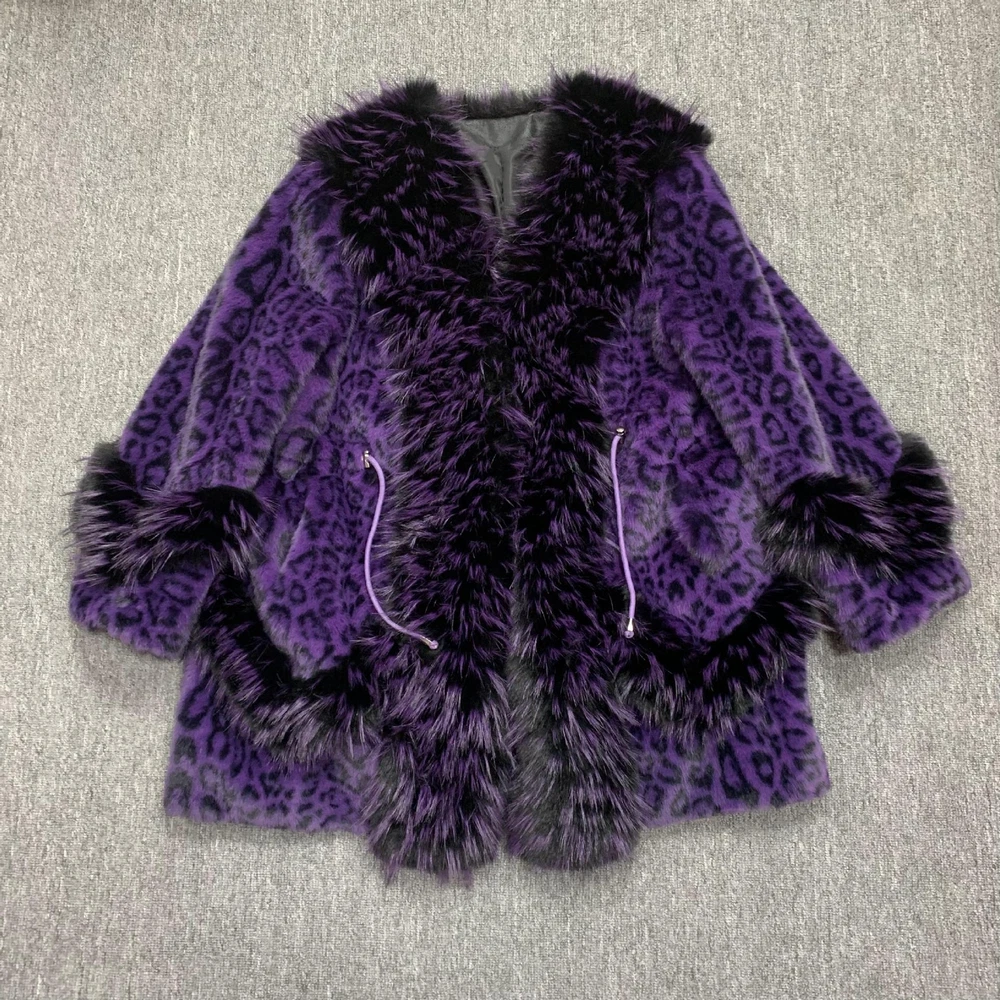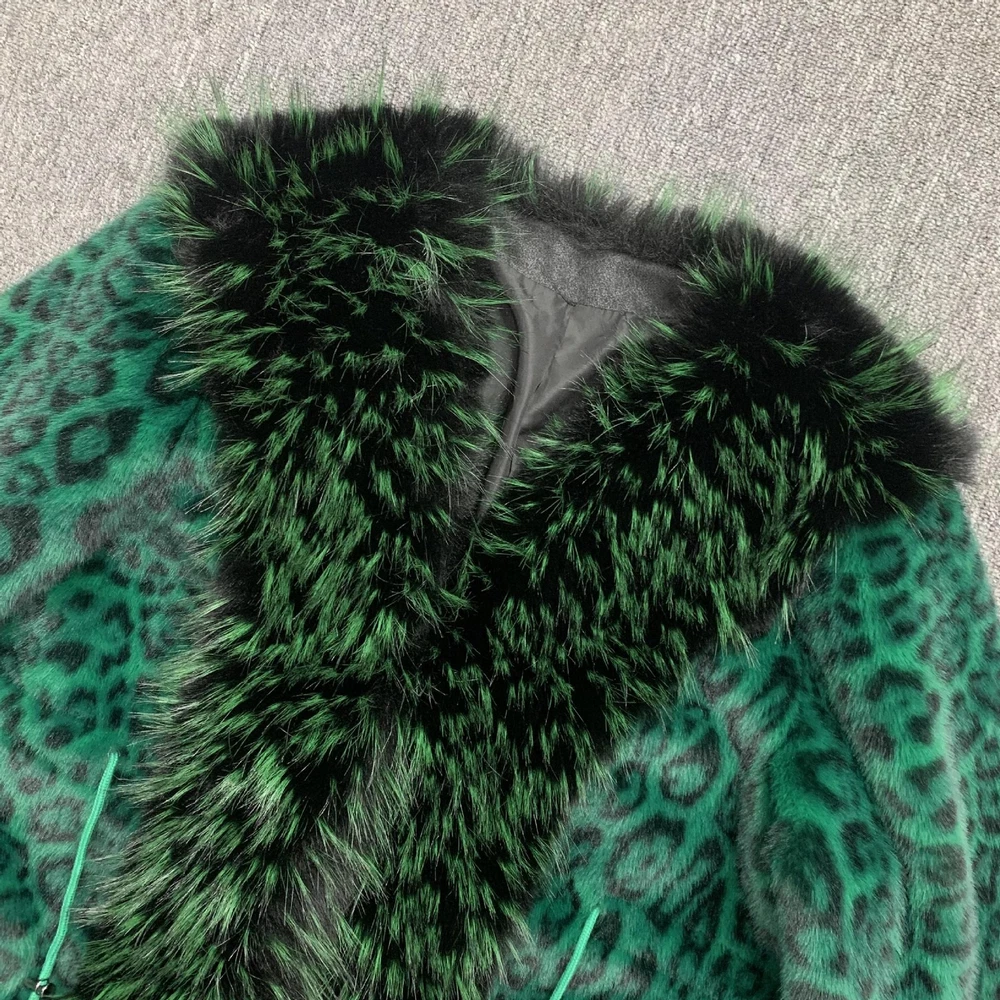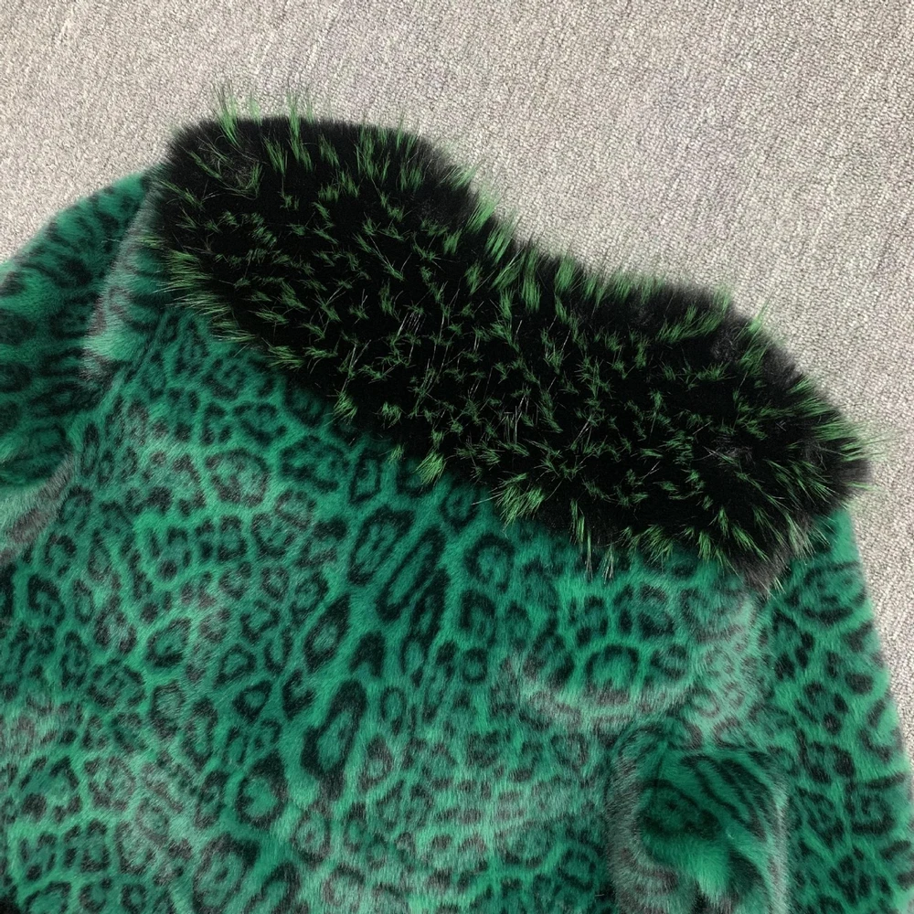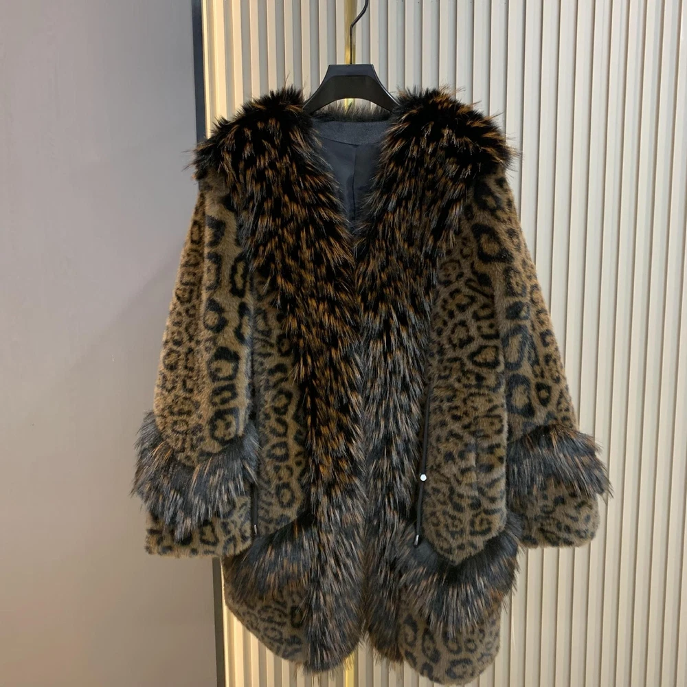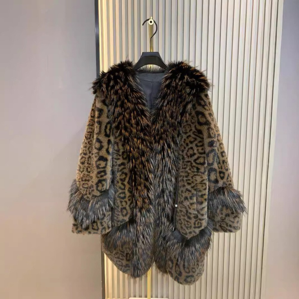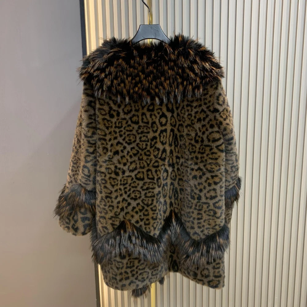 Winter Leopard Print Faux Fur Jacket Women Casual Mink Coat Overcoat