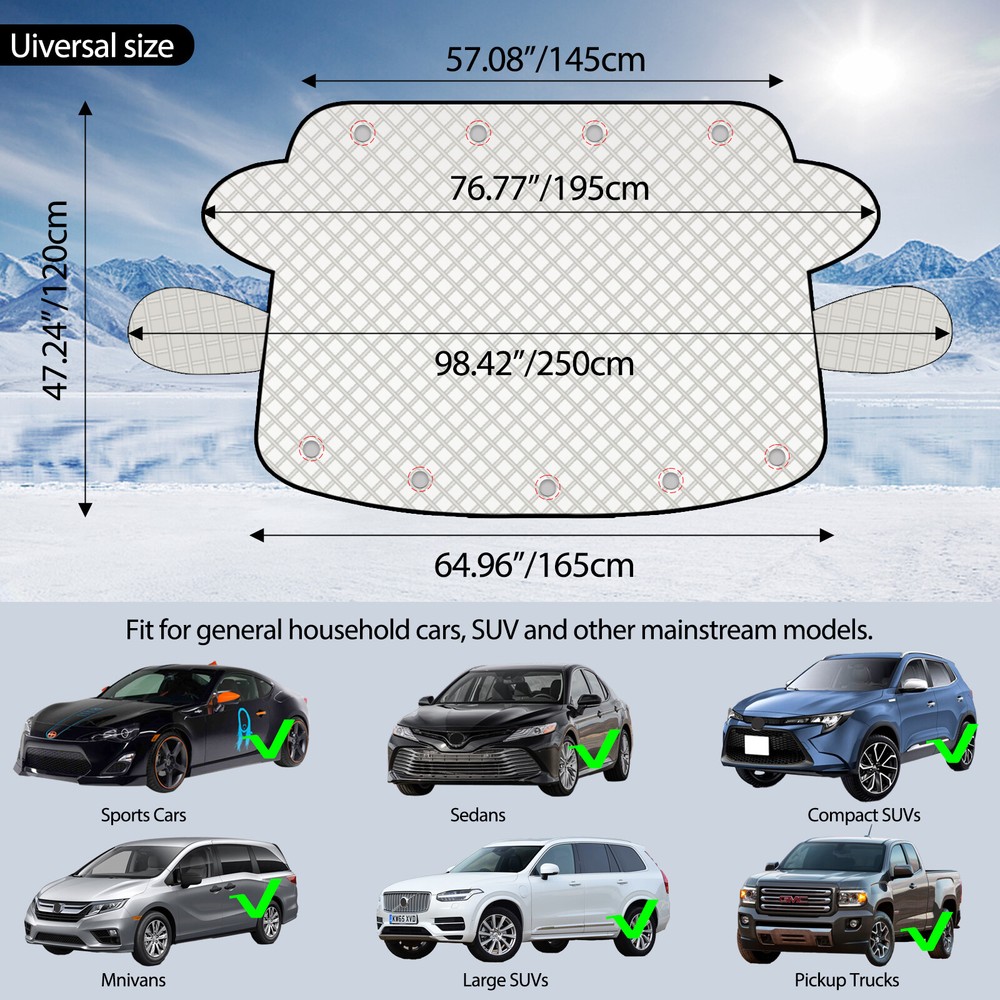 Winter Magnetic Car Windshield Cover Protector Snow Ice-Frost Guard Sun Shade Features: 【Premium Protection】 : Windshield snow cover can protect your car windshield and 2 side mirrors from snow, ice, frost, freezing rain, debris from tree,sunshade etc, Saving your time by no more scraping ice and snow in harsh winter mornings. This windshield visor prevents the dashboard from fading and cracking in the sun and keeps the interior of the car cooler in hot weather. 【Thickened Material】 : The windshield snow cover is made of 5 layers of thickened, high quality material. In addition, the magnet and elastic edge design make it fit tightly to your car and the car cover does not blow away easily. The magnet is covered with a soft non-woven fabric that effectively protects the windshield wiper. 【Easy to Install】 : Clip the wings of the windshield cover to the door and secure the elastic band, which not only prevents it from being blown away by the wind, but also prevents theft. When you don't need to use the snow cover, it can be easily folded into a compact pouch for easy storage. 【Fits Most Cars】: The universal size is suitable for almost all vehicles such as SUVs, trucks and vans, etc. Our windshield snow cover completely covers the windshield and wiper to prevent it from freezing and clogging. Specification: High quality,100%Brand New! Material : PEVA Aluminium Foil, Composite Cotton, Non-woven Lining Color : Silver Closure Type : Magnetic Product Size: about 165*120CM Package: 1 x Windshield Cover We accept Paypal and majoy credit cards payment When you place an order, please choose a shipping method and pay for the order including the shipping fee within 48 hours. And please make sure your current address correct after your payment within 1-2 days! About Shipping 1. Receiving time = Processing time + Shipping time 2. Processing Time: Around 1-3 Days 3. Shipping Time: 15-26 Days By Air Mail 3-10 Working Days By Express We do not guarantee delivery time on all international shipments due to differences in customs clearing times in individual countries, which may affect how quickly your product is inspected! Important Notice >Transit Time Is Best Estimated But NOT Guaranteed As Transit Time Varies >Orders may be subject to import taxes, customs duties and fees levied by the destination country.Additional charges for customs clearance must be fulfilled by the recipient; We no control over these charges, nor can we predict what they may be. 100% Customer Satisfaction Is Our Top Priority For Any Reasons You Are Not Satisfied With The Products Within 30 Days Of Purchase, Return Or Exchange Can Be Issued, Customers Are Responsible For The Return Shipping Cost And Subsequent Replacement Shipping Cost For An Exchange Item. Replacement Item Will Be Processed And Shipped Upon Return And Inspection Of The Original Item. Return Items Must Be In Their Original Packaging And Unused Condition, Or They Will Be Rejected And Sent Back To You. Due To The Nature Of The Products We Sell, We Carefully Inspect All Packages Prior To Shipping. All Of Our Products Are Sold As Brand New, All Damaged Products Are Considered Damaged During Transit. If You Received A Damaged Or Broken Item, Please Save All Packaging Material And Paperwork And Contact Us Immediately So We Can Help You With The Damage Claim With The Shipping Carrier. No Claims Will Be Honored After 14 Days Upon Item Receive. Digital Photos Will Be Required For All Cases. All Products Come With A 60 Days Limited Warranty Against Manufacturer’s Defects. No Exchange Will Be Issued On Products That Have Been Damaged In Any Way. Warranty Does Not Applied To Improper Installation, Water / Fire Damage, Modification, Or Any Acts Of Nature . If you have any question or concern, please feel free to contact us via eBay massage directly, we will get back to you as soon as we are available ATTENTION : We do not answer any emails over the weekend Please send message to us.We will reply your message in 24 hours, Our working time: 9:00 AM-22:30 PM (GMT+ 08:00 Beijing) 1:00 AM -14:30 PM (GMT+ 00:00 London) 19:00 PM-08:30 AM (GMT- 06:00 USA/Canada) Why Choose us? 1. A tremendous variety of products-- With over 200,000 items in stock, we are one of the world's largest online stores in automotive aftermarket product sector. You'll have more choices than what you can ever imagine. What's more, we're updating with over 100 new arrivals per month! 2. Affordable prices -- we are offering the latest car parts and accessories for almost 20 years, we're always keeping up with the newest trends, while most importantly, making the prices as low as we can. 3. Free worldwide shipping -- Yep, you won't believe that you'll enjoy free worldwide shipping with us (unless stated otherwise),it's not a joke,but an absolute truth. 4. No-question refund and return-- Anything wrong issuing quality and breakage can be returned or refundable. Car Remote Central Door Locking Kit Red Thread Steering Wheel Cover Wiper Nozzle Gray Steering Wheel Cover