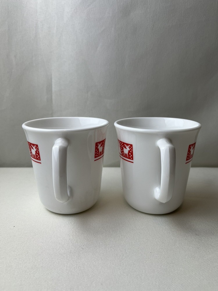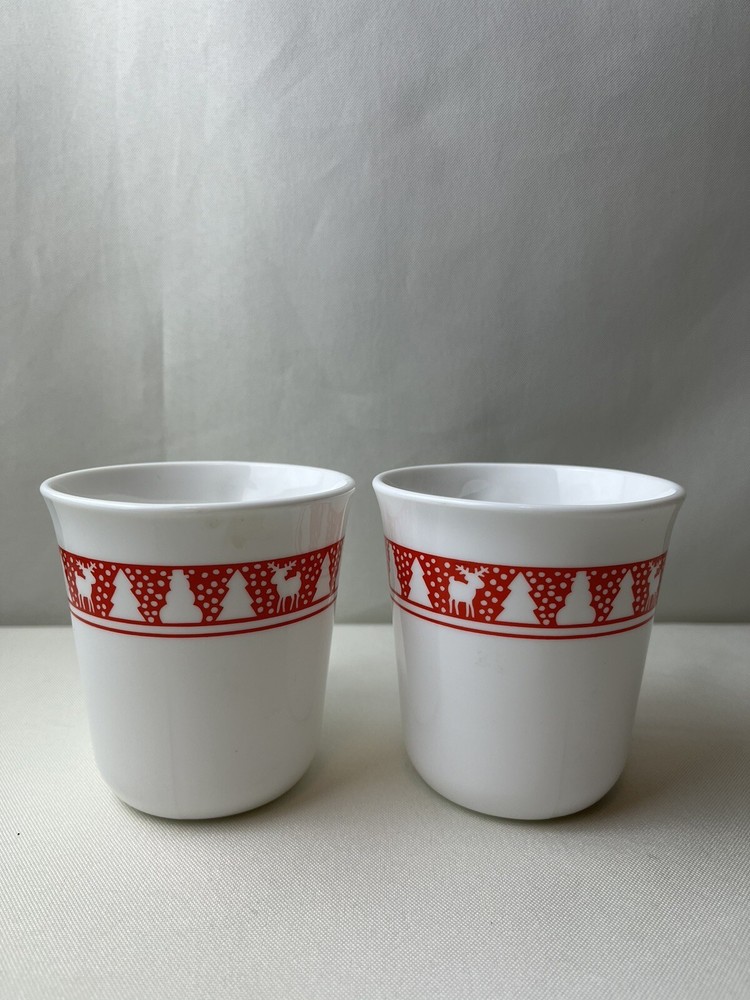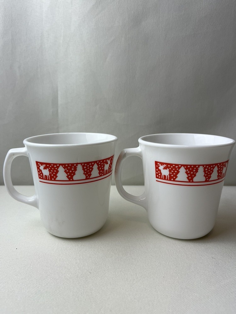 Corning Winter Red & White Mug. Christmas Tree Snowman Reindeer Coffee Tea Cup. Cute!