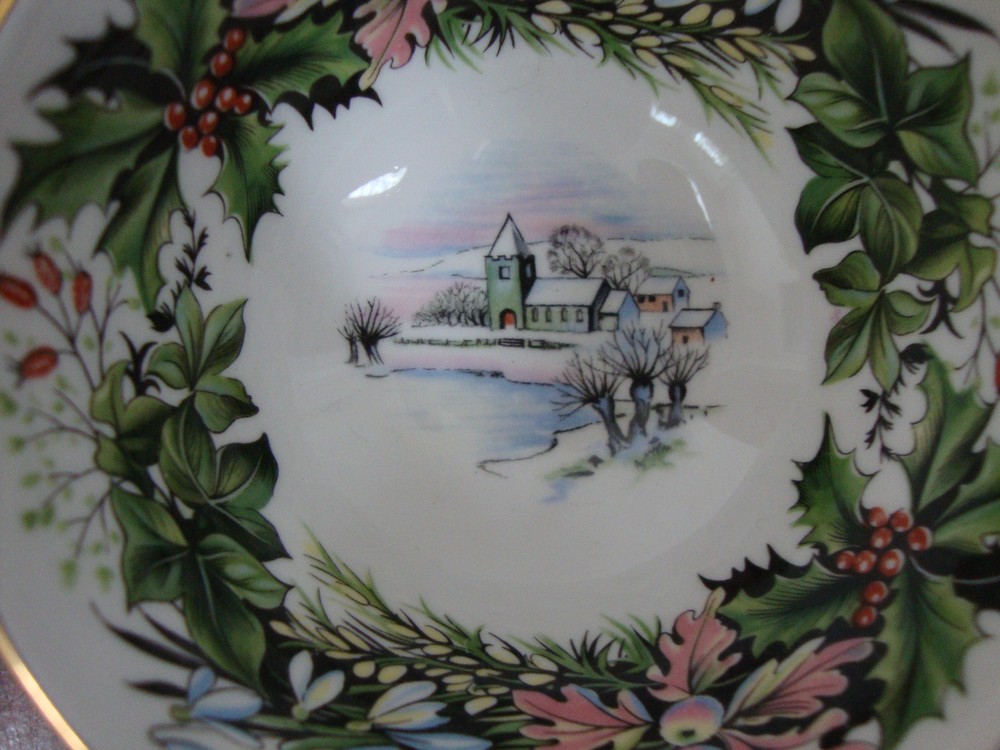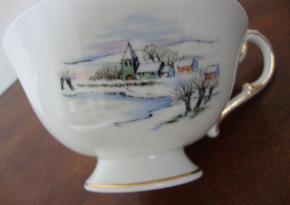 Vintage Paragon Tea Cup in the Seasonal Greetings Pattern. This appears to be the Winter scene. Great color with Gold trim around cup rim and around cup foot. Cup measures approximately 4" wide not including the handle and is about 2 1/4" tall. Great Vintage Condition. No nicks, chips or cracks. Please take a look at my other vintage items for sale by clicking "see other items" under my seller name above. I am happy to combine shipping where it is safe to ship the items together.