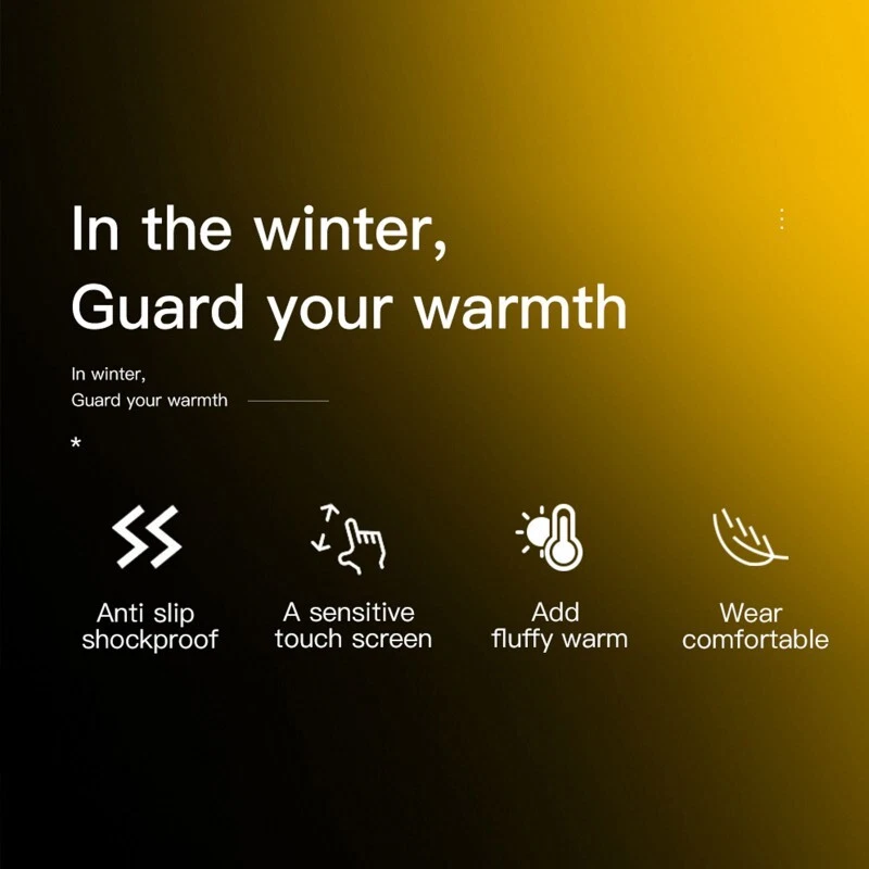 Product Description Features: 【Unisex Soft Gloves】 Made from 90% acrylic, 5% Polyester, 5% Spandex, thin and lightweight but extremely comfortable, warm and soft. Also with the stretchy snug fit, you can type a text just as fast as you would without gloves. 【HIGH SENSITIVE TOUCHSCREEN】 Featuring high sensitive conductive material on thumbs, forefingers and middle fingers, you can wear the gloves to touch screen of your smartphone, tablet, iPhone or other touch screen devices. 【TRIANGLE SILICONE ANTI-SLIP】Fully covered with triangle silicone on palm, you can grip the steering wheel firmly when driving or hold your phone steadily without worrying about it slipping from your hand. 【Windproof and waterproof】TPU waterproof layer is sewn in special way in thermal gloves. can keep your hand warm always even in light rain or snow while . And the gloves are stretchy enough to fit your hands perfectly. 【GOOD GIFT FOR YOUR FAMILY AND FRIENDS】These gloves are unisex and stretchy and have two sizes to choose, you can send one as a gift to your family or friends without worrying about the problem of size. Specification: Material: Cotton fiber / Conductive fiber / Delicate warm fluff Color: Gray&Black Weight:100g Size M:Palm circumference 7.1-7.9inch (18-20cm) Glove length 9.3inch (23.5cm) Size L:Palm circumference 7.5-8.3inch (19-21cm) Glove length 9.5inch (24cm) Size XL:Palm circumference 8.3-9.1inch (21-23cm) Glove length 9.7inch (24.5cm) Package Includes: 1 Pair of Winter Gloves