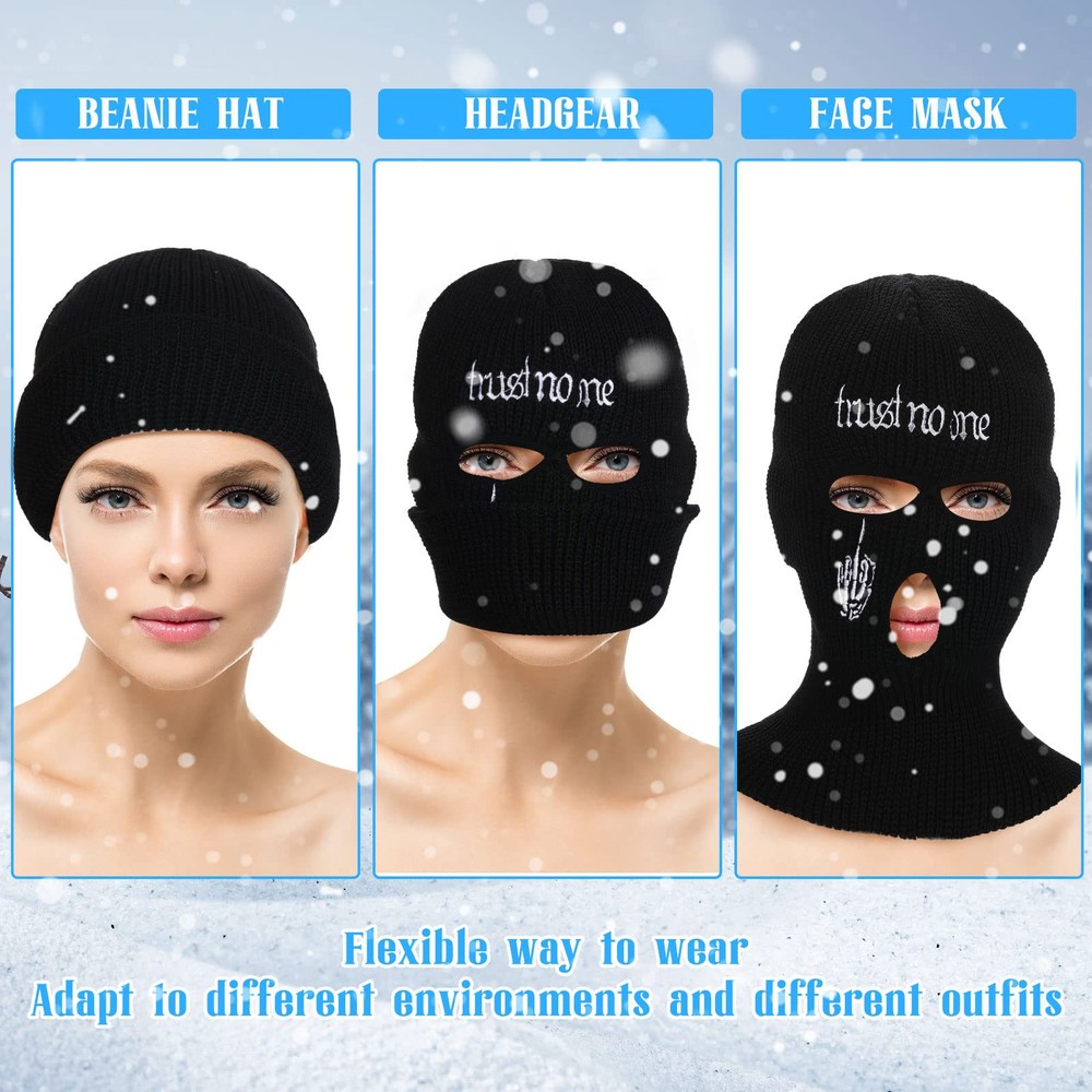 Comfortable Fabric to Serve You: each balaclava ski mask is made of acrylic yarn material, breathable and soft, lightweight and reliable, comfortable to touch, not break or fade easily, bringing you a pleasant wearing experience One Size to Fit Most: the balaclava face mask is in proper size which can fit most people, like women and men; It is stretchy, so it can fit your head circumference; You can carry it with you easily because it does not take up too much space 3 Hole Design: the ski mask for women is designed with 3 hole style; It can cover your head fully to keep you warm, with 3 hole design, you can breathe easily; It is convenient for you to see something with your eyes and eat something with your mouth, flexible and practical Wide Range of Application: the balaclava winter ski mask is not only suitable for daily wear, like going to offices and so on, it is also suitable for outdoor activities such as skiing, mountaineering, camping, hunting and more Practical Gifts: the full face knit mask is suitable for you to send to your friends, family members, relatives, lovers and other people on Christmas, Halloween, Thanksgiving and more, showing your sincere care to them