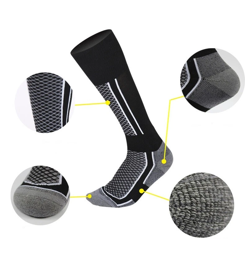 Product Description If you have any questions, please contact customer service first, do not open disputes easily, thank you! Features: Durable, easy care, allowing repeated washing, not shrink, no distortion, no mildew. Excellent moisture-round effects hiking socks . Mixed with moisture absorption,automatic temperature control and perspiration moisture to keep feet dry . Avoid liner so comfortable walking foot blisters skin inflammation. Suitable for mountaineering, hiking, cycling, running and other outdoor sports. Specifications: Name: Long Thickened Ski Socks Size: Men Socks (39-45 Yards), Women Socks (33-39) Yards, Children Socks (31-38 Yards) Material: Cotton, Spandex, Nylon Weight: Adult model 85g, children's model about 65g Color: Purple Black, Pink White, Gray Black, Blue Black Use: Snow Sports and Travel in Alpine Regions Package Included: 1 pair * Ski Socks Note: 1.Please allow 1-3cm error due to manual measurement. pls make sure you do not mind before you order. 2.Light shooting and different displays may cause the color of the item in the picture a little different from the real thing. About Us We accept all payments authorized by eBay. powered by