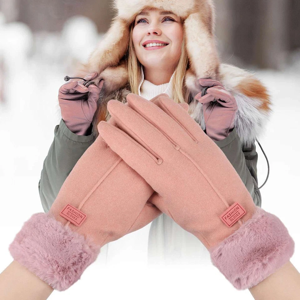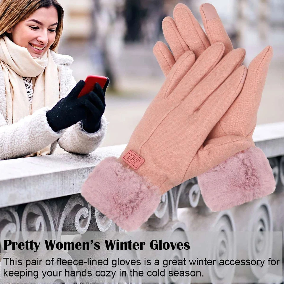 $ 5.12Women Ladies Winter Gloves Touch Screen Fleece Suede Warm Soft Fur Lined Thermal