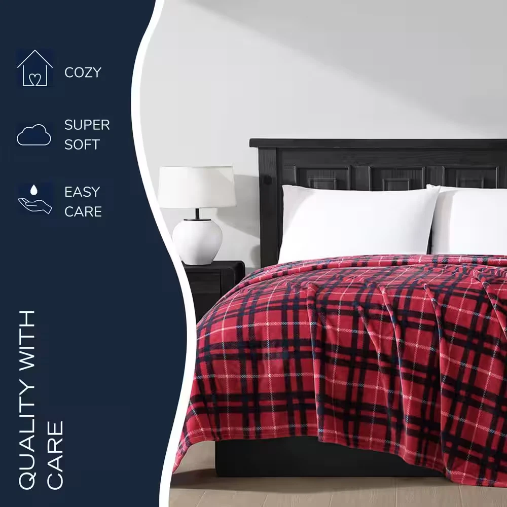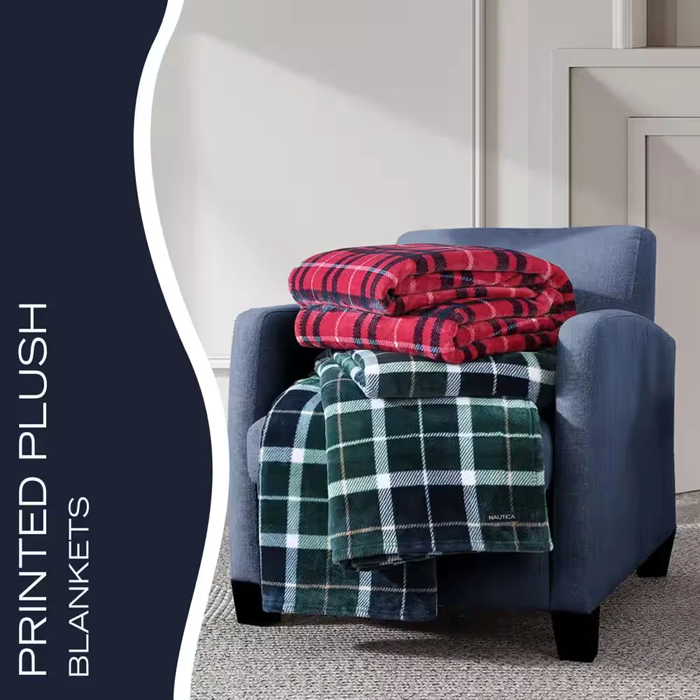 Looking for a super cozy construction in Nautica ultra soft plush blankets- made using 100% polyester knit, they are designed for ultimate comfort. Lightweight being 300 gsm. but also provides extra warmth. Folded end hems for a clean finish on all 4-sides with the addition of a Nautica woven logo patch for branding. Available in twin, full/queen and king sizes, these classic Nautica plaids are machine washable. Made using 100% polyester knit, this ultra plush fleece blanket is designed for ultimate comfort weight 300 gsm Nautica winter tattersall blanket features a tattersall plaid in navy blue on a deep red ground with a thin white grid throughout Ultra soft, plush and cozy feel not only lightweight but provides extra warmth to keep your body cozy whether snuggled up on the couch or adding that extra layer on your bed Folded end hems for a clean finish with addition of a Nautica woven logo patch 1-multi-purpose blanket included King blanket measures 90 in. W x 108 in. L Easy care- machine washable