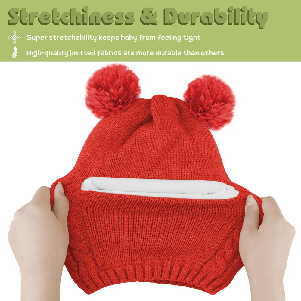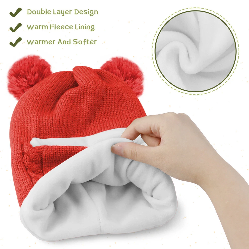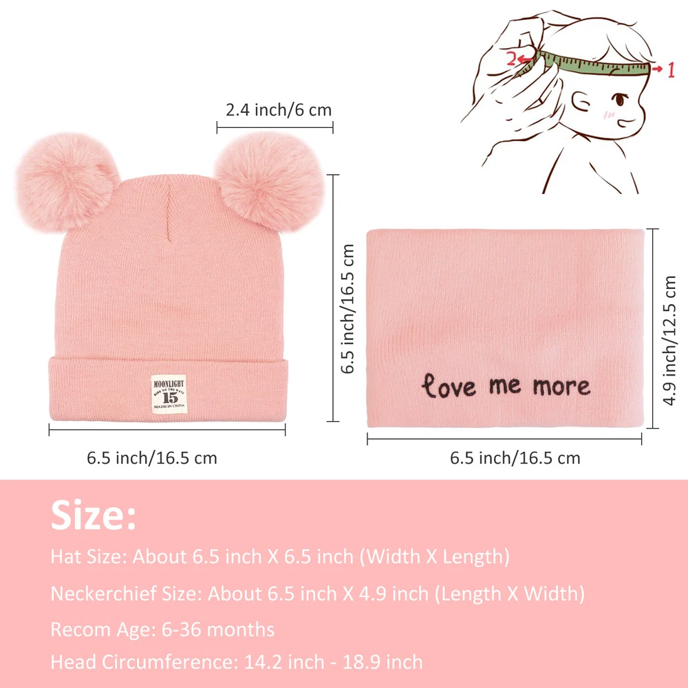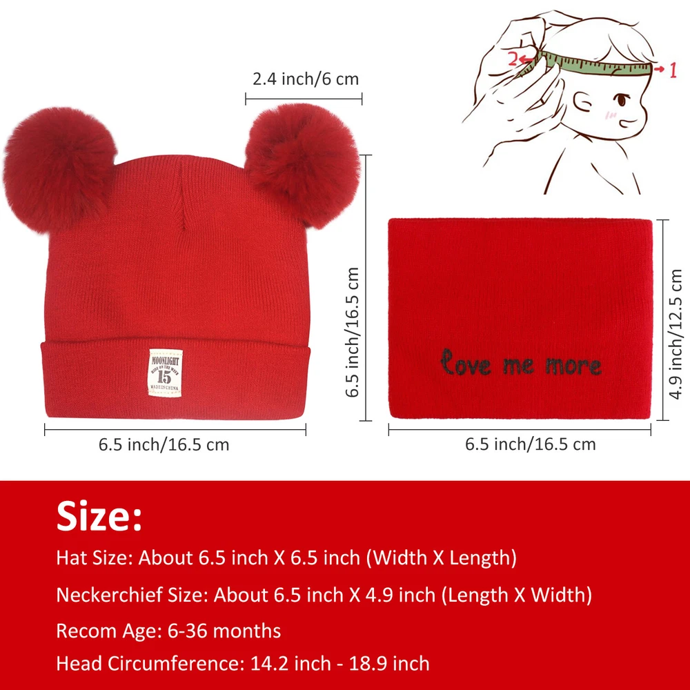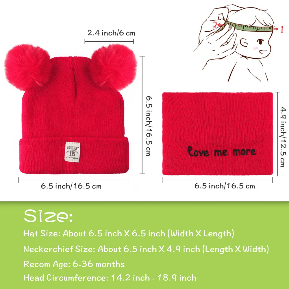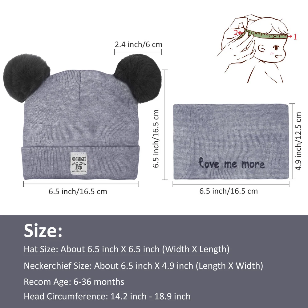Winter Toddler Baby Kid Boy Girl Warm Knit Beanie Cap Hat Skull Cover Scarf Set Features: √ [ PREMIUM MATERIAL] Breathable and soft material makes the knitted infant hat not only cute but also comfortable. The knit winter hat is made of green raw materials, formaldehyde free and azo-free dyes, no harsh chemicals against baby's skin. √ [ EARFLAP HOOD SKULL CAPS] The winter hat with fleece lined for warmth and soft protects your baby's head,face and neck, keeps them warm in cooler environments. The hat is thicker, warm enough for babies even outdoors in winter. √ [ DIFFERENT STYLE&EASY TO FOLD] Different wearing methods are suitable for different temperatures. With the earflap hood, there is no need to buy another scarf or earmuffs, you can also roll it up into a regular hat. Easy to fold so that you can protect baby from wind chill whenever and wherever possible. √ [ CUTE DESIGN] This hat combines cute design with bright colors. It can catch your baby's attention. Several colors and styles to meet with different taste. Suitable for a variety of occasions: home, school, travel, birthday, Christmas and so on. Suit for 0-6 Years old kids,boys and girls. Package Included: 1x Winter Toddler Baby Kid Boy Girl Warm Knit Beanie Hat Skull Cap Cover Scarf Set Best Service: If you have any questions when receiving our baby bear ear hat,please contact us and we will solve it for you at the first time. If our baby knitted have any quality problems,we will give you an unconditional refund.