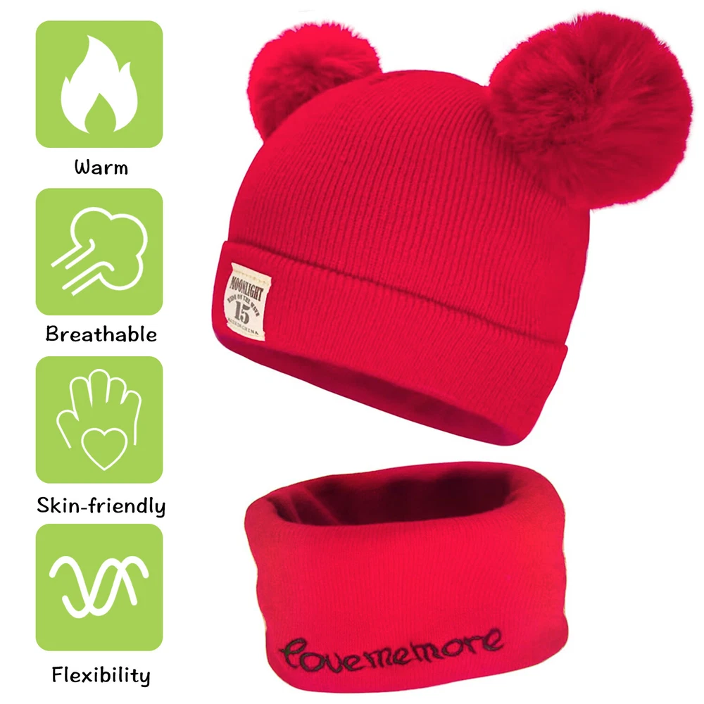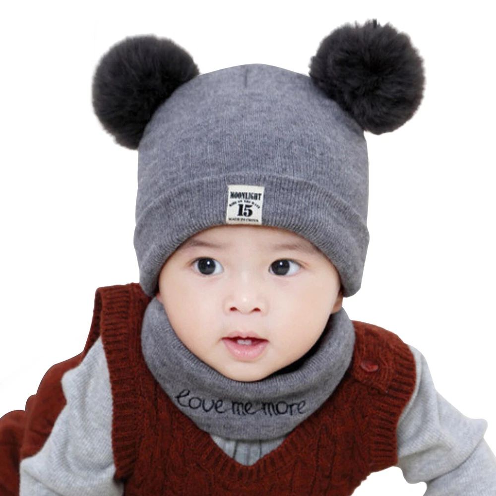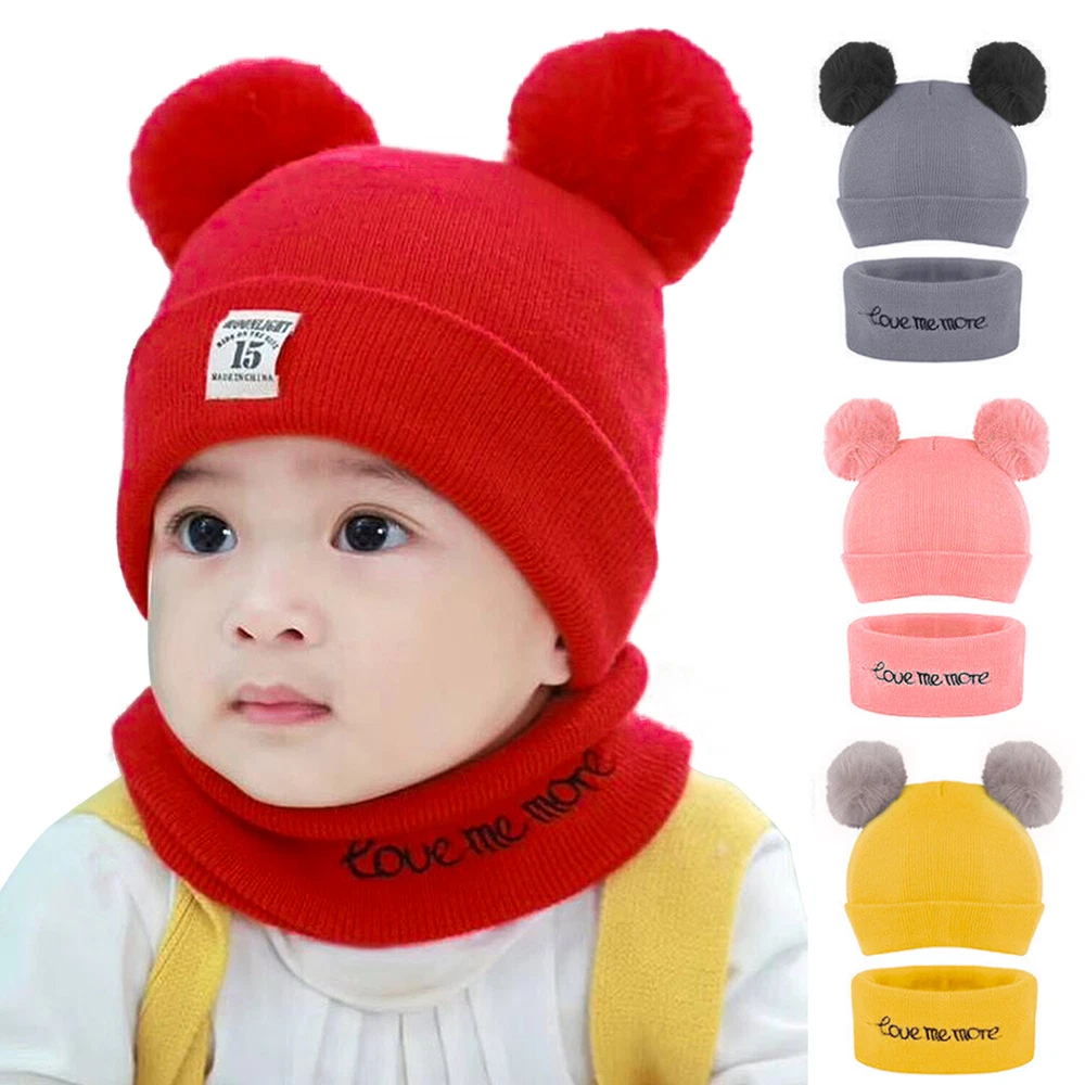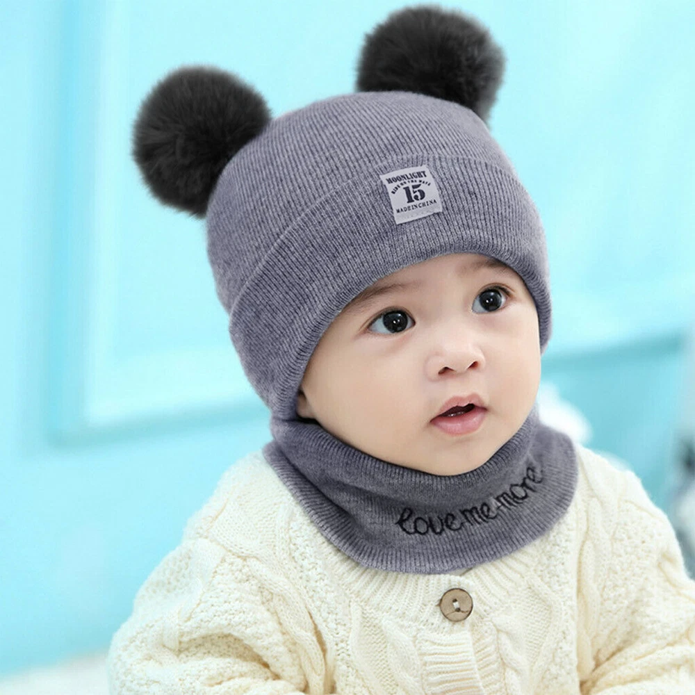 Winter Toddler Baby Kid Boy Girl Warm Knit Beanie Hat Skull Cap Cover Scarf Set