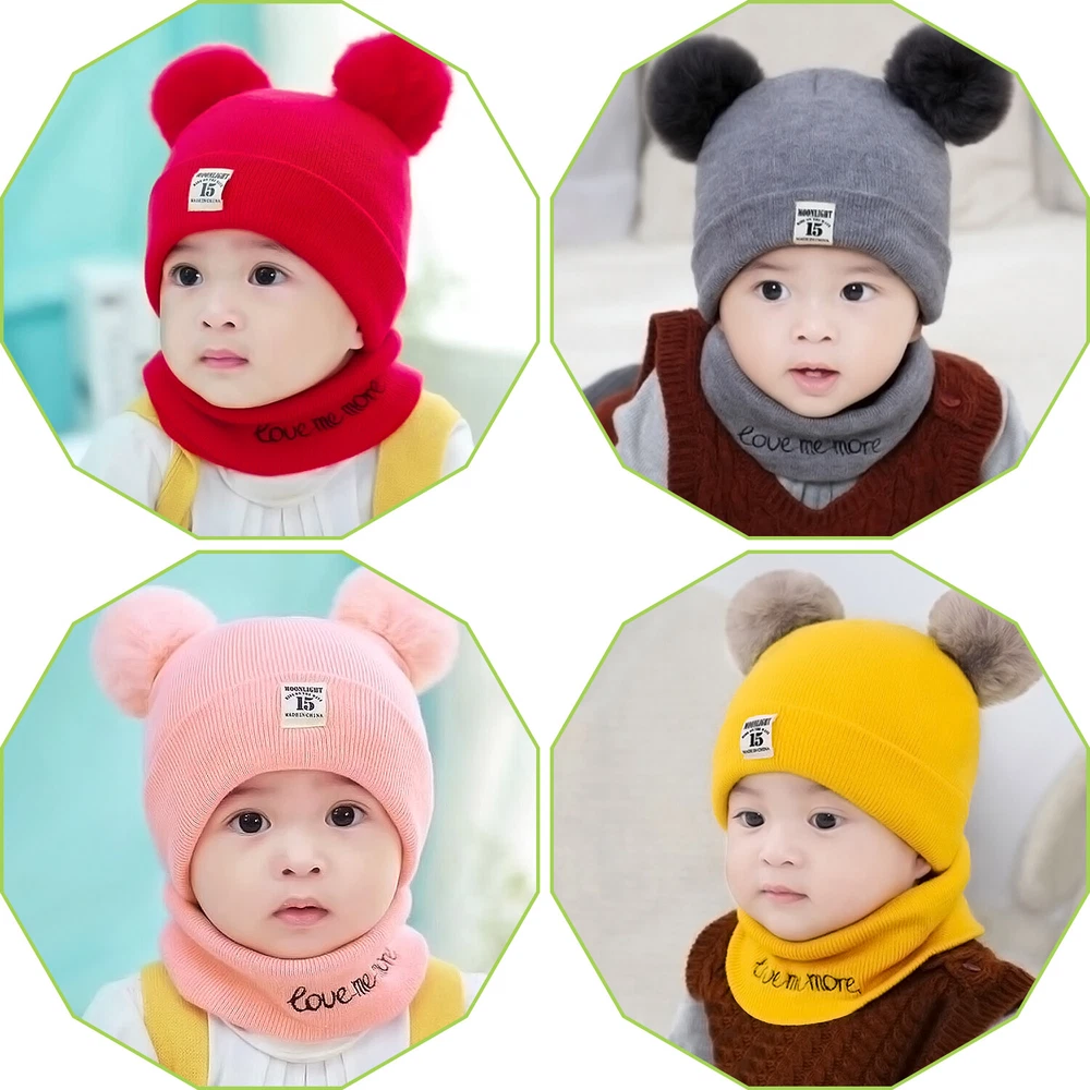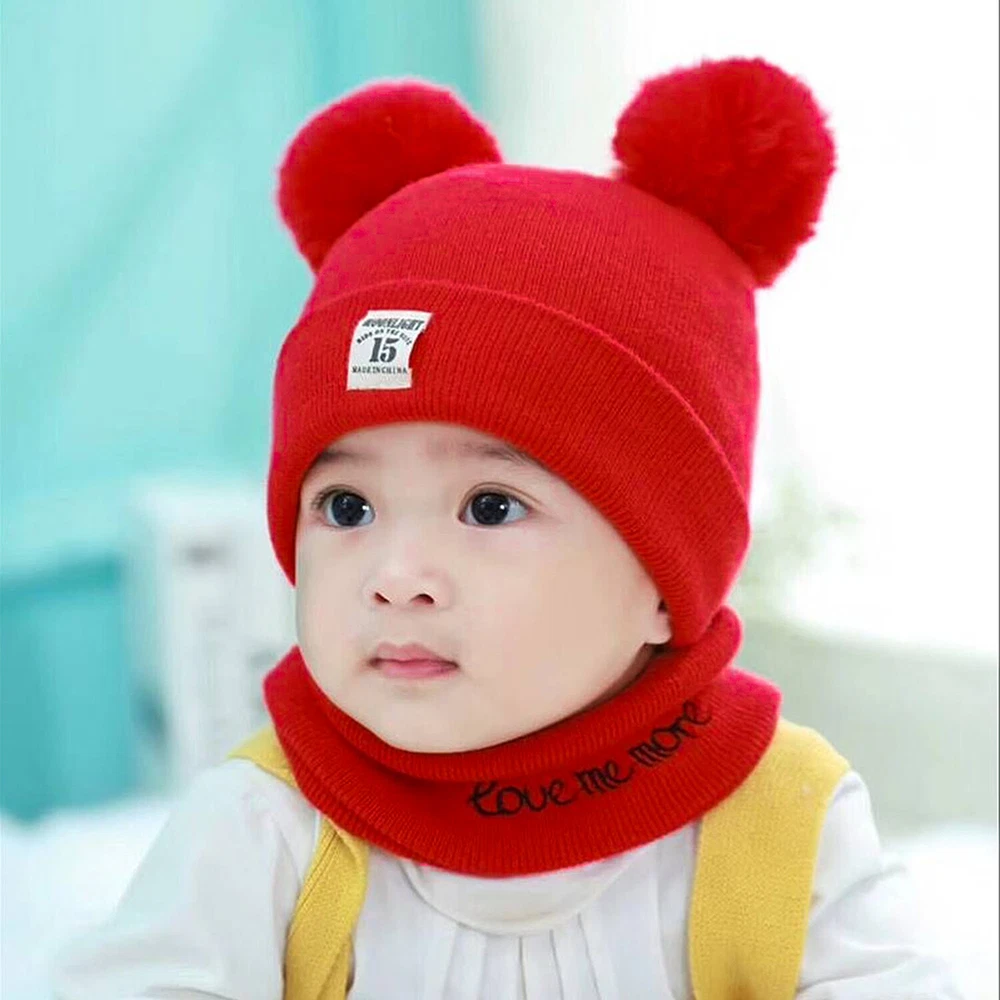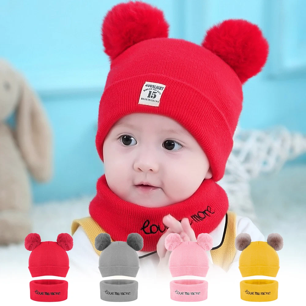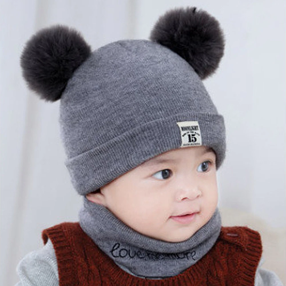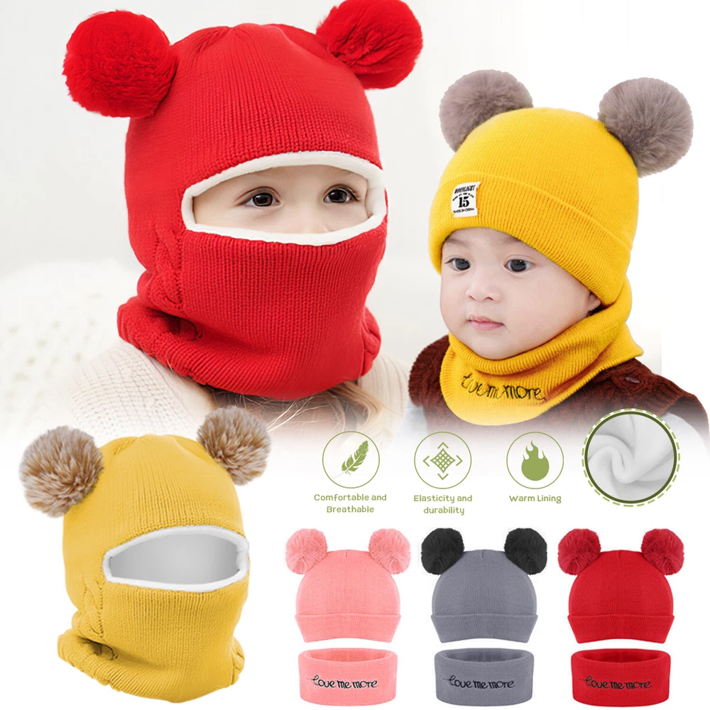 Winter Toddler Baby Kid Boy Girl Warm Knit Beanie Hat Skull Cap Cover Scarf Set
