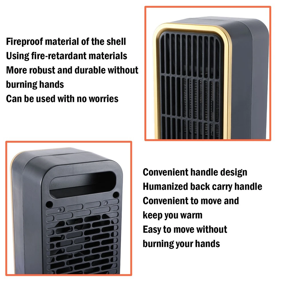 ★SPECIAL TIPS: √ Ship within 24 hours Via USPS from NJ,USA √ 100% New & Excellent Quality √ Professional Customer Service . √ Strictly QC, Each set was fully tested before shipping √ Offer delivery with Tracking Number Product Feature 1.Fast Heating: The Hot Air Fan is heated by PTC ceramic, which can heat up quickly in a short time and provide you with warm airflow. 2.Lightless Heating: The Space Heater uses lightless technology, which produces heat while emitting almost no light, avoiding light irritation and damage to the eyes. 3.Auto Power Off: When the temperature of the Portable Electric Heater exceeds a certain threshold, it will automatically cut off the power supply to prevent safety hazards such as circuit damage or fire. 4.Wide-Angle Heat Delivery: The Electric Heater adopts a wide-angle heat delivery design, which can significantly expand the heating range and ensure that all corners of the room can feel the warm airflow. 5.Low Noise: The Small Heater adopts advanced noise reduction technology and makes almost no noise when running, providing you with a warm and quiet sleeping environment. Product Parameter Heating Method: PTC Ceramic Heating Material: Flame Retardant ABS Voltage: 110V Power: 500w Color: Black Size: 10.3x11x26.2cm/4.06x4.33x10.31in Products Include 1x Hot Air Fan 1x Instruction Manual