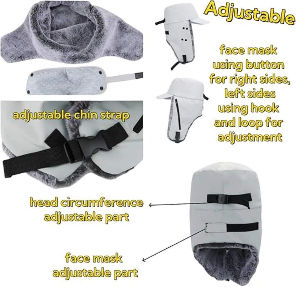 Product Description: 1.Prepare for Winter Season of 2024: It is wise to prepare a hat in advance that is both stylish and warm.This Trapper Ushanka Hat, with its classic design and warm earmuffs, is undoubtedly ideal for the winter months.Its warmth is perfect for cold weather, while its Russian-inspired design brings a touch of exoticism to the table 2.Windproof and breathable: 100% high-quality insulated polyester shell of this winter hat was compressed layer by layer to form a waterproof and breathable sandwich structure fabric. While protecting against the external cold wind,the breathable winter hats keep your head warm and dry.The mask in the hat can be removed and worn separately. 3.Comfort and skin-friendly: mysuntown winter warm hat uses high-end comfortable and warm artificial fur, soft to the touch, and with long-lasting warmth.This warm hat is an ideal gift for family and friends in winter. 4.Full Coverage: This ski winter hat comes with ear flaps and removable and washable mask to fully protect your head, ears and face.Wear this winter trapper hat, you can feel warm when going out on a cold winter day, so as to enjoy the good time of winter. 5.Wide applicability: classic pilot hat style design, warm and convenient.A wonderful winter hat for wearing while skiing, snowboarding, skating, sledding, snowshoeing, camping, hiking or any outdoor sports and activities.This winter warm hat is also the perfect gift for any loved one in your life,suit for festival gifts in Christmas, Thanksgiving, New Year's Gifts for 2024, family day, birthday, Mother's day gift, Father's day gift. Package Include d: 1x Winter Hat Notice: 1. Please allow 2-3% error due to manual measurement. 2. The colors may have different as the difference display, please understand. Contact US: Your satisfaction is our highest priority. Please contact us if you have any questions or requests about our products or service. We are always glad to assist you and stand by our products.