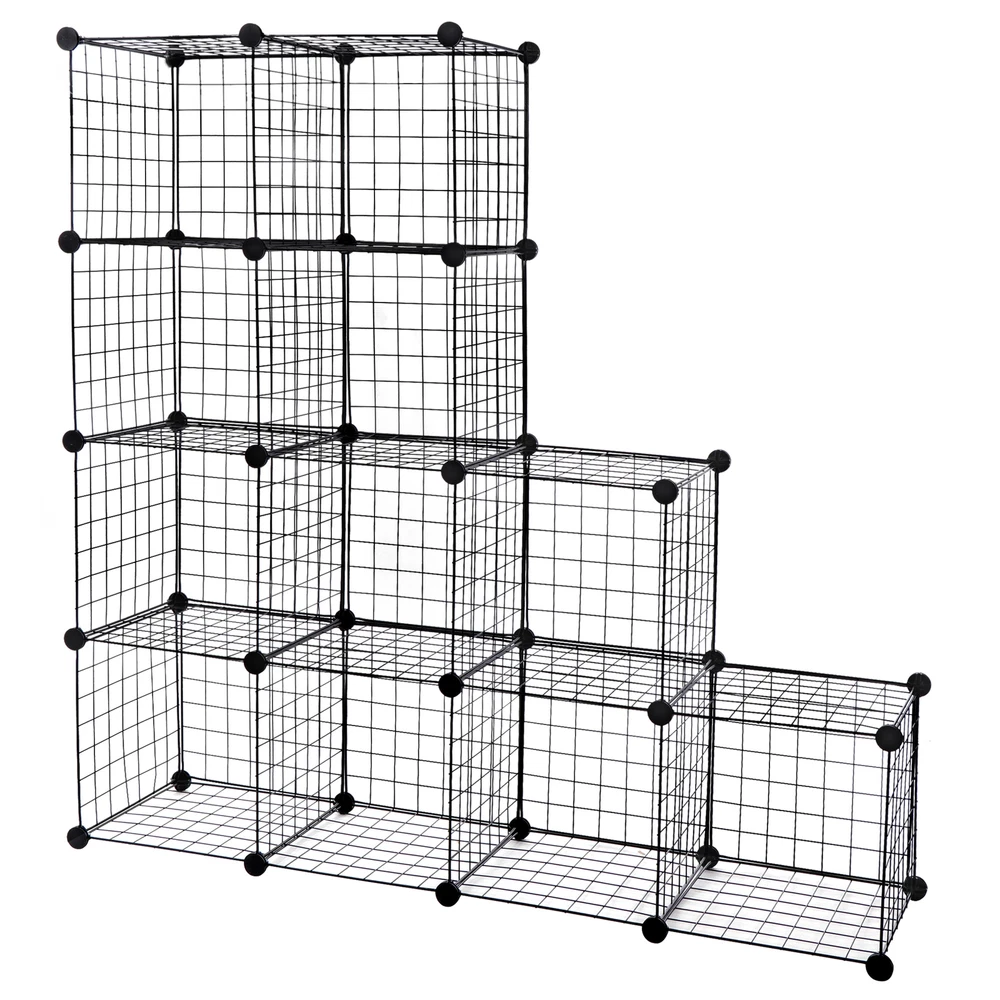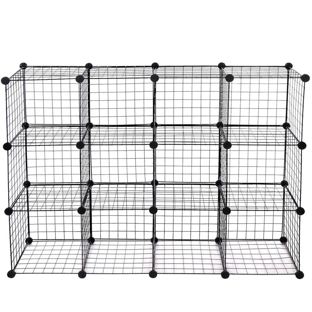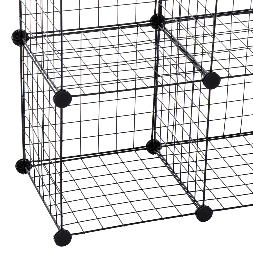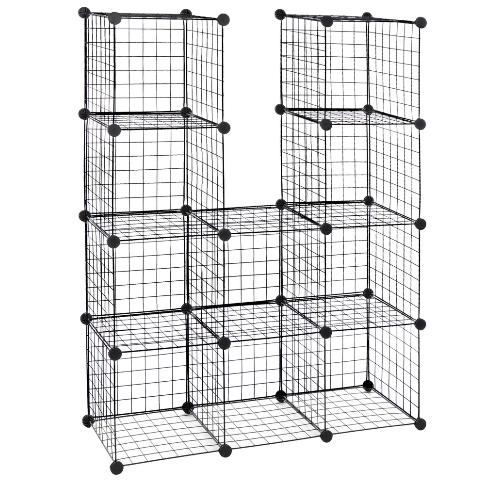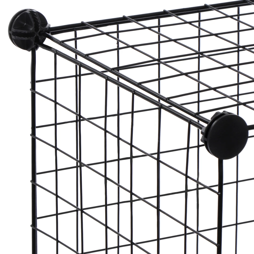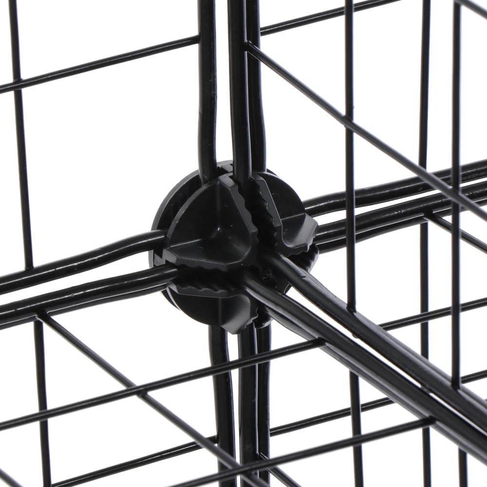 Specifications: Color:Black Item Weight:8.05kg Material:ABS connectors,Metal Wire Panel and Rust-proof Metal Frame Product Size:93*123.5*31.5cm/36.6"*48.6"*12.4" Size for Each Cube:30*30.5*30cm/11.8"*12"*11.8" Features: Excellent Stability: Constructed with PP plastic plates, ABS connectors and iron wire mesh shelves, this interlocking rack is sturdy and durable; Anti-toppling fittings are provided to fix it to the Wall for safety Multifunction Usage: This multifunctional metal wire cube storage has a modern industrial wire grid style for an ideal choice to your living room, bedroom, kid ’s room, corridor or kitchen etc. Perfect as a storage rack for clothes, books, shoes, toys, bags, artcrafts, potted plants and other necessities. Within the number of panels, you can also install a pet fence to give your pet a comfortable home Easy Assembly & Various Shapes: with its simple and light structure, it is easy to assemble; combine the unit into different shapes to fit your needs (refer to instructions for variations) Package Contents: 43 x Wire Panels 42 x Connectors 1x Wooden Malle 1x Instruction Manual
