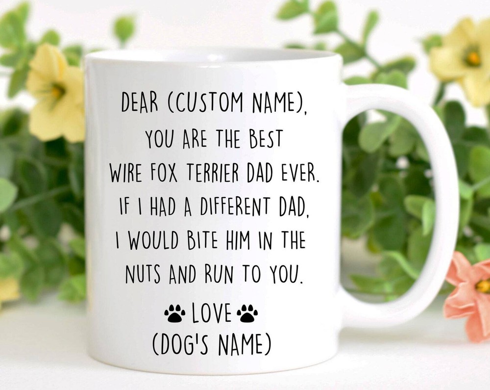 Wire Fox Terrier Dad Birthday Gift Wire Fox Dad Christmas Gift Wire Fox Dad Valetine Wirehaired Terrier Dad Mug Wire Fox Dad Appreciate Product Details.. This high quality 11oz. ceramic white mug has a premium hard coat that provides crisp and vibrant color reproduction sure to last for years. Perfect for all hot & cold beverages. The highest quality printing possible is used. It will never fade no matter how many times you wash it. Material: 100% Ceramic. Print both sides. Dishwasher and Microwave Safe. High Gloss + Premium White Finish. Printed in the U.S.A. Personalized & Custom. We support personalized and custom mug to add custom, when placing an order, you can add notes to the "order note" in shipping address section. Also you can contact us directly via message. Shipping Info. Ready to ship in 1 to 2 business days, All products are made-to-order and proudly printed in the United States. Shipped by USPS and DHL, You will receive your order in 5-7 days. Replace & Refund. All products are defective during shipping broken, chipped will be replaced free of charge. You are not satisfied with the product, we will refund 100% money to you. If any other issues arise, please do not hesitate to message, we would be more than happy to assist you.