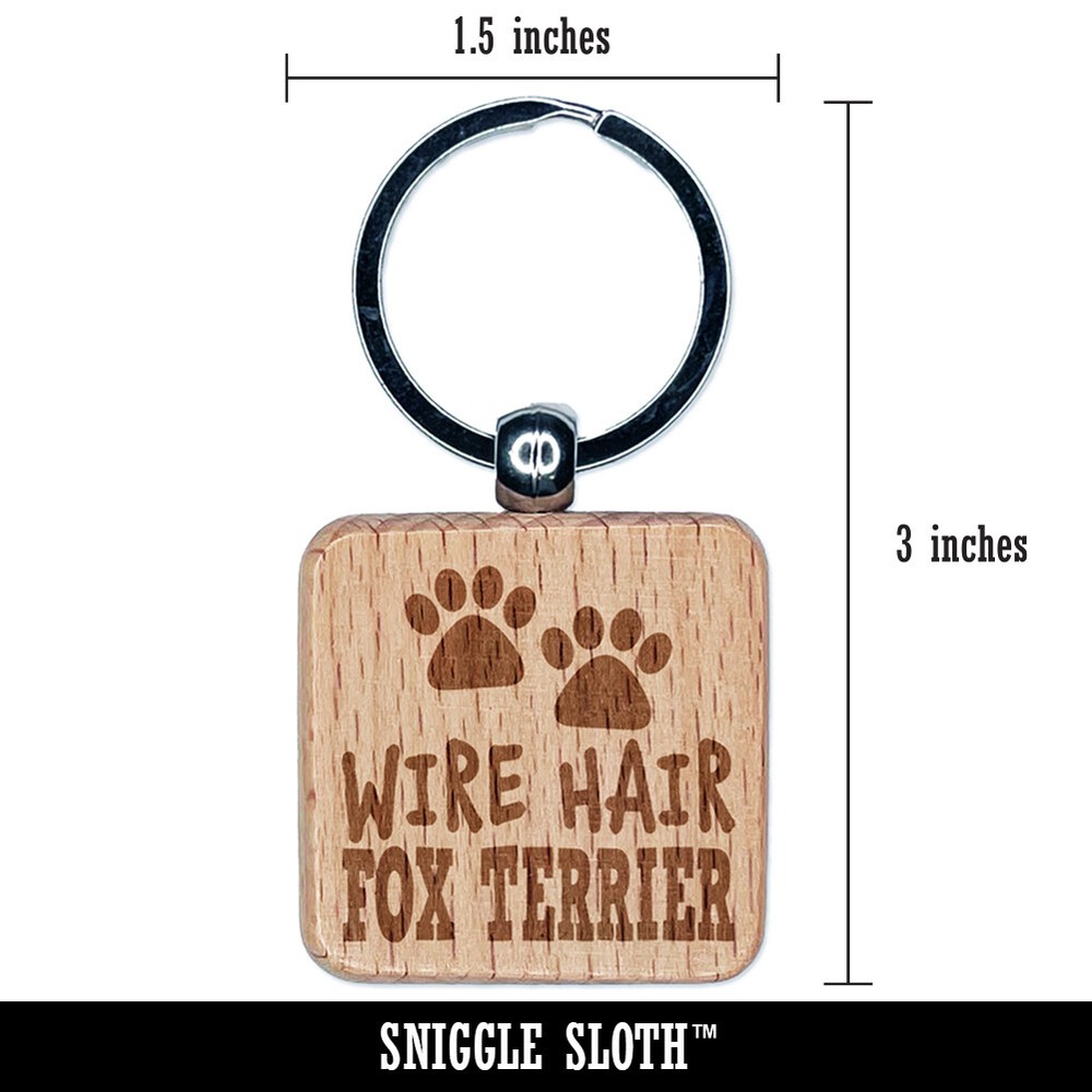 Woof Dog Paw Prints Hearts Love Fun Text Engraved Wood Square Keychain Tag Charm