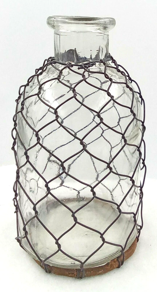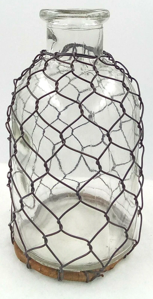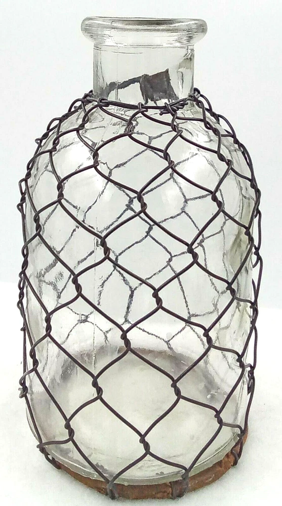 Wire Mesh Bottle Vase Glass Clear Black Wire Rustic Round Lip Mouth 6.5" Tall. Measurements are approximately 6.5" tall and 3" in diameter. Condition is Brand New/Unused. Please check out the photos in this listing for further information. If you have any questions or concerns, please contact us. Thank you for your support! Please check out The Burly Owl Lady eBay store for more home decor goodies! Shipping USPS. We ship vintage and new items. We carefully pack with care to ensure thesafety of each item. We do not passthese packaging costs onto the buyer. Furthermore, we do not charge any extra fees for handling. We only charge for the USPS shipping charge. We do monitor shipping prices frequently. In most cases, we do find the USPS to be themost inexpensive way to ship our products. We try to be as detailed as we possibly can in our photosand descriptions. We try to mention anyimperfections in our vintage items. Wemay miss things from time to time or our photos may not be enough clarificationfor you to see the item. We will be gladto answer any questions or send you more photos. If at any time, you have a question or issue, please contactus immediately. We will contact youwithin 24 hours. We want to make sureyou have a good experience in purchasing any of the products. If you are happy with your purchase, please leavefeedback. It will help us to grow andoffer more great items in our store! Thank you for your interest in one of the many products inour eBay store! Renee Burly Owl Lady