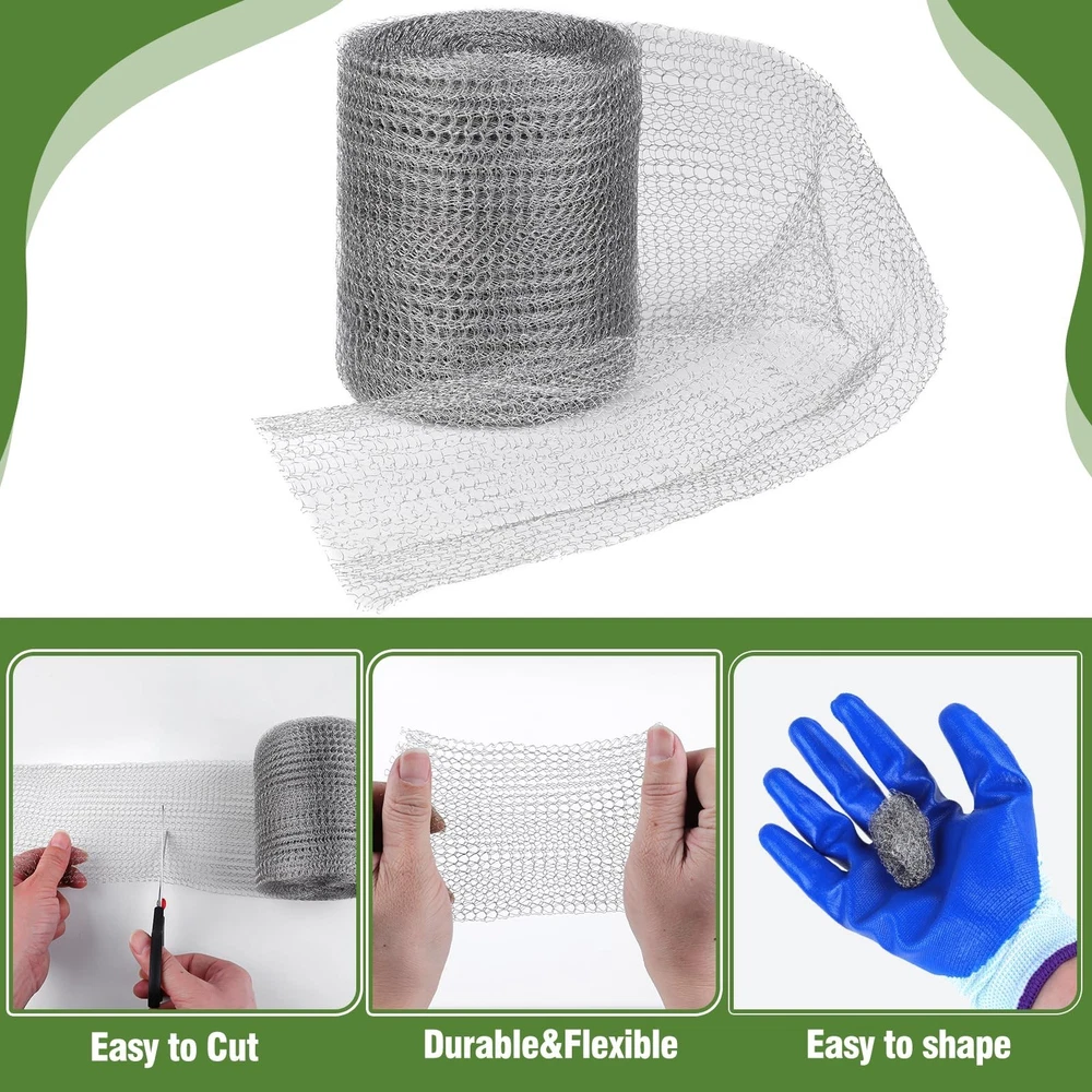 Wire Mesh for Mice Control 5" X 100',Steel Wool Mice Control,Upgraded Stainless Steel Wire Mesh Roll,Hole Filler Fabric Suitable for Gardens and Houses Product Details Size: 5"X100' Color: Grey Number of Items: 1 Brand: FIFIFO MPN: fififo5X100 UPC: Does not apply EAN: Does not apply Material: stainless steel mesh Brand: FIFIFO Item dimensions L x W x H: 5.1 x 5.1 x 5.9 inches Color: Grey Shape: Rectangular Product Dimensions : 5.1 x 5.1 x 5.9 inches; 15.04 ounces Date First Available : February 1, 2024 Manufacturer : FIFIFO Best Sellers Rank: #252,674 in Industrial & Scientific (See Top 100 in Industrial & Scientific) #231 in Stainless Steel Sheets #287 in Mesh & Wire Cloth #231 in Stainless Steel Sheets #287 in Mesh & Wire Cloth Customer Reviews: 4.2 4.2 out of 5 stars (46) Material quality The wire mesh roll made of 304 stainless steel, not easy to rust, with semi-flexible dense weave structure, easy to completely, not easy to break.And stainless steel wrap is easy to cut and roll to size needed Large size and High quality The steel mesh rodent control measures 5 inches X 100 feet and is easy to cut, allowing you to use the mesh in more places to keep rodent out Effective hole pluggingIdeal for keeping annoying creatures out of places you don't want them to go and be a mesh netting for plants for filling holes of any shape and size Fruit protectionCut the right size wire mesh to wrap around the fruit or potted plant you want to protect from squirrels, birds chewing up the roots, but it won't stop airborne moisture from getting in NoteWhen cutting the hole filler mesh, you can put a piece of non-scratchy paper underneath, or cut them above the trash can to prevent wire scraps from splattering everywhere