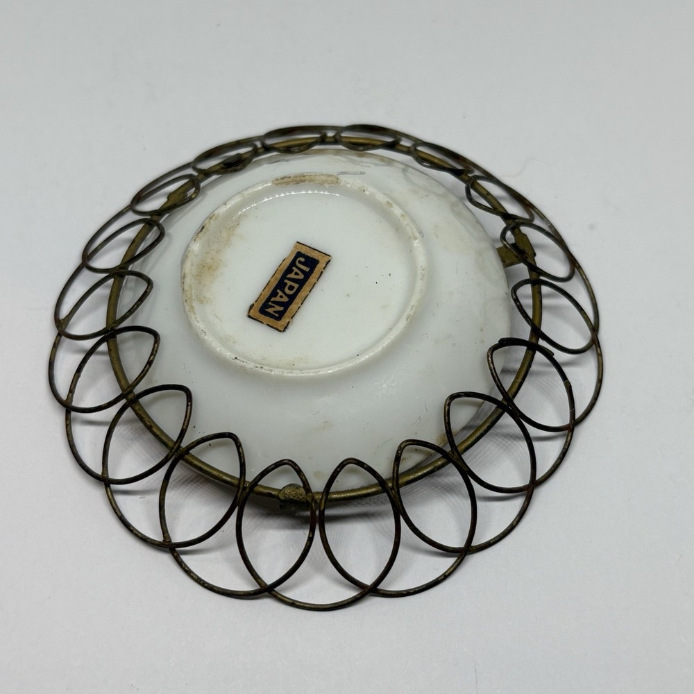 Wire Rim Floral Plate Japan Hanging Farmhouse Kitchen Décor Pink Vintage