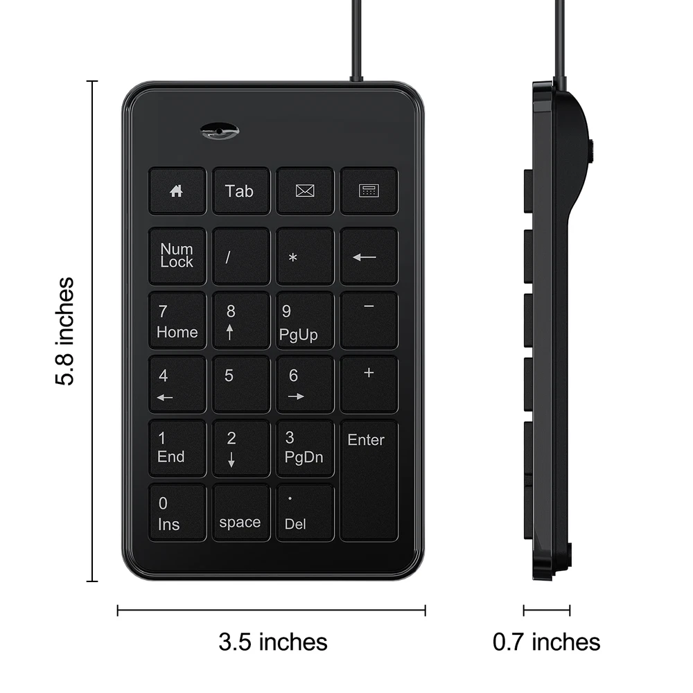 CBUS Wired USB-A Numeric Keypad 23 Keys Numpad Keyboard Effortless Setup – Wired USB Number keypad is plug-and-play, requiring no drivers or batteries, ensuring a quick and stable connection for immediate use Quiet & Comfortable Typing – The 23-key USB numeric keypad features an integrated ergonomic tilt for improved comfort and reduced wrist strain. Enjoy a quiet, soft-touch experience with low-noise keystrokes, perfect for long hours of use USB Number Pad Keyboard – With a compact size, this keypad enhances speed and accuracy, making it easier to locate and press the numbers you need. It also supports NumLock for reliable performance Lightweight & Compact – This black USB numpad wired is suitable for tasks like working on spreadsheets, making it an excellent choice for home, office, school, business trips, or daily use, providing convenient and efficient number input for accounting, calculation and more Broad Compatibility – USB number pad for laptop, Windows 2000, XP, Vista, Windows 7/8/10/11, Mac, MacOS, iOS, inux, and Android operating systems. Works with PC, desktop, notebook, Chromebooks, tablets, and other devices with USB Type-A ports