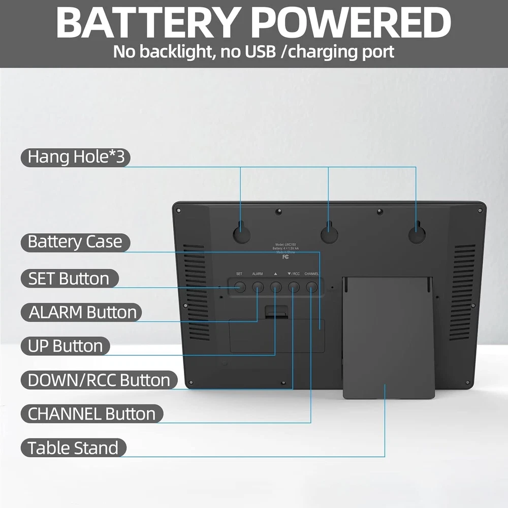 Wireless Atomic Wall Clock with Outdoor Temperature & Humidity Sensor ‹ › ‹ › ‹ › ‹ › ‹ › ‹ › ‹ › ‹ › ‹ › Wireless Atomic Wall Clock with Outdoor Temperature & Humidity Sensor 📡 ACCURATE ATOMIC CLOCK: Automatically synchronizes with the US Government’s National Institute for accurate timekeeping. 👍 15" LCD HIGH DEFINITION DISPLAY: Large numbers for easy reading, displays time, calendar, temperature, and humidity. 👍 WIRELESS OUTDOOR SENSOR: Transmits accurate outdoor temperature and humidity measurements up to 328 feet. 👍 OPERATED BATTERY: Powered by batteries for easy setup and use, perfect for seniors. 🎁 PERFECT GIFT: Stylish design, can be hung on the wall or placed on a desk, ideal gift for loved ones. ⚠️ Note: Temperature below -4°F require Lithium batteries in the outdoor sensor. Features: Accurate atomic clock with automatic time synchronization Large 15" LCD display with easy-to-read numbers Wireless outdoor sensor for accurate temperature and humidity readings Battery operated for easy setup and use Perfect gift for birthdays, holidays, and special occasions Benefits: Accurate timekeeping with atomic clock technology Easy-to-read display with multiple functions Convenient wireless outdoor sensor for outdoor conditions Simple setup and operation, perfect for seniors Stylish design for home or office decor Why choose our Wireless Atomic Wall Clock? Experience accurate timekeeping and weather monitoring with our Wireless Atomic Wall Clock. With automatic synchronization and a large display, this clock is perfect for keeping track of time, temperature, and humidity both indoors and outdoors. Easy to set up and use, it makes a great gift for loved ones. Don't settle for less - choose our Wireless Atomic Wall Clock for reliable timekeeping and weather monitoring. Order yours today and enjoy the convenience and accuracy of our Atomic Wall Clock! Shipping Free & Fast Shipping - We offer free shipping to most of the USA with a normal delivery time of 3-7 days. However, due to the current situation, additional delivery time (up to 3 weeks) may be required for some items. Alternative Carriers - We may use alternative carriers (e.g. USPS, FedEx, UPS, etc.) to ensure your package arrives safely and on time. Due to the use of multiple carriers, we are unable to provide a tracking number automatically. Handling Time - Orders are processed and shipped within 1-2 business days of receiving cleared payment. Shipping Restrictions - Shipping to Alaska, Hawaii, Puerto Rico, Guam, and other US territories may incur shipping charges or delivery restrictions. Please contact us before ordering, or your order can be refunded/cancelled. State Restrictions - There may be restrictions based on your state of purchase. For example, certain items may not be shipped to California due to state regulations. Contact for Tracking Updates - If you require tracking updates or have any concerns about the delivery of your order, please feel free to contact us, and we will be happy to assist you. Return 30-Day Hassle-Free Returns - We want you to be completely satisfied with your purchase. If you are not, you can return the item within 30 days of receiving it for a full refund or exchange. Easy Return Process - To start a return, simply contact us and we will provide you with a prepaid return shipping label and detailed instructions. Restocking Fee - There are no restocking fees for returns. However, the buyer is responsible for return shipping costs if the return is not due to a seller's error. Refund Processing Time - Refunds will be processed within 5 business days of receiving the returned item in its original condition. Payment We accept all major credit cards, PayPal, and Apple Pay for your convenience. Your payment information is secure and encrypted to ensure a safe and seamless transaction. Please complete your payment within 3 days of purchase to avoid any delays in shipping. Feedback Your feedback is extremely important to us. We strive to provide the best products and customer service possible. If you are satisfied with your purchase, please take a moment to leave us a positive review. If you have any concerns or issues with your order, please contact us before leaving negative feedback. We are committed to resolving any problems and ensuring your satisfaction. Contact Us If you have any questions or concerns, please feel free to reach out to our customer support team. You can contact us through the eBay messaging system. We are available Monday to Friday, 9:00 am to 5:00 pm EST, and we will do our best to respond to your inquiry within 24 hours. Thank you for supporting our small family business!