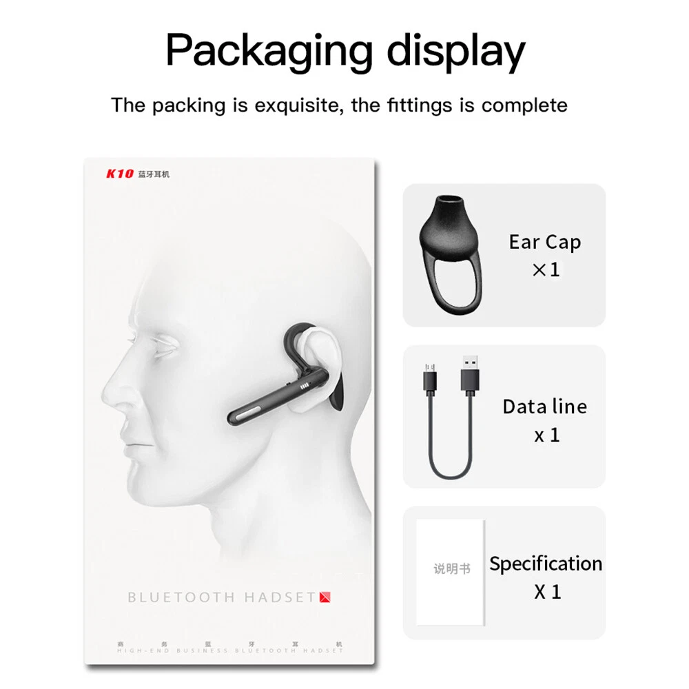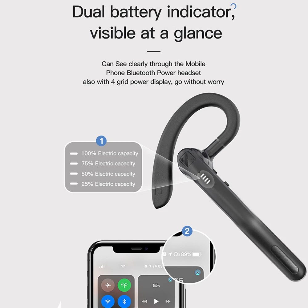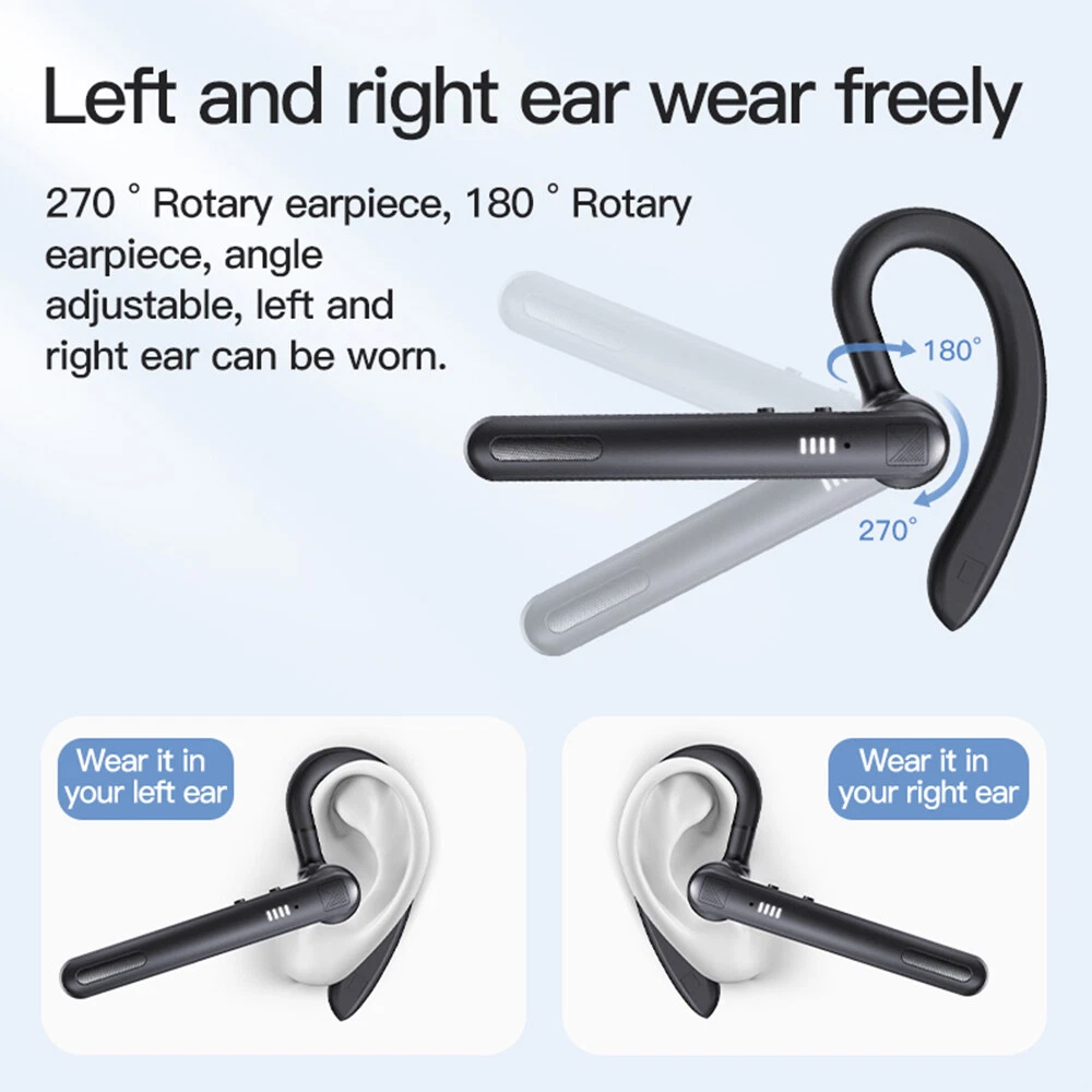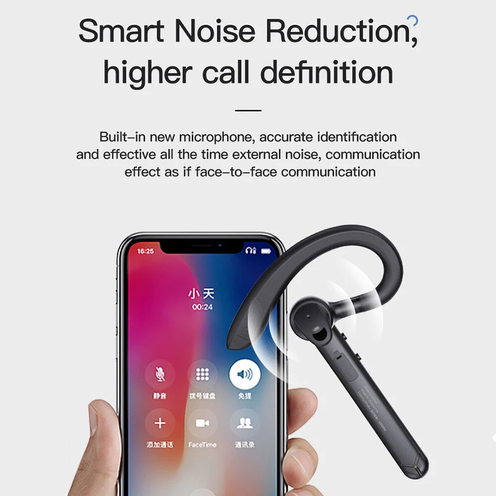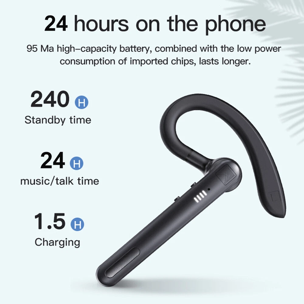 Features: πŸ‘ Bluetooth 5.0: upgraded Bluetooth 5.0 version, faster pairing, stable connection. πŸ‘ EASY TO USE: physical buttons to answer and hang up calls, volume adjustment, effectively avoiding accidental touch. πŸ‘ COMFORTABLE TO WEAR: This headset is designed according to ergonomics, it will make the headset fit your ears firmly. πŸ‘ FREE CONVERTION: 180Β° rotating earhook design, universal for both left and right ears, to meet users with different ear habits. πŸ‘ Dual microphone noise reduction: advanced boom microphone, clear voice calls, more suitable for business calls and driving calls. πŸ‘HiFi sound: with intelligent noise reduction technology, even in a noisy environment, you can enjoy HiFi sound music or let HD mobile phone calls. πŸ‘ WIDE COMPATIBILITY: This headset can be paired with iPhone, Android mobile phones, suitable for fitness/office/exercise/truck driving and so on. Specifications: -Bluetooth version: v5.0 -Wireless frequency: 2.4GHZ -Support protocol: A2DP1.3/HFP1.6/HSP1.2/AVRCP1.6/D11.3 -Transmission distance: 10 metres -Battery capacity: 50mAh -Charging case capacity: 500mAh -Charging voltage: 5V/1A -Talking time: about 24 hours (with charging case) -Charging time: about 1.5 hours -Standby time: 240 hours -Headset style: A model / B model (optional) -Key features: connect two devices, spare ear cap, 180Β° rotation, dual-mic noise cancellation -Operation mode: physical buttons -Product colour: black Model A Package Includes: 1*Bluetooth headset 1*User manual 2*Ear cap 1*Charging case 1*USB cable Model B Package includes: 1*Bluetooth headset 1*User manual 2*Ear cap 1*USB cable Attention: Depending on the light colour may vary! Please allow a slight 1-2cm difference due to manual measurement! Thank you for your understanding and attention, wish you have a pleasant shopping experience! On Feb 5, 2025 at 22:20:26 PST, seller added the following information: